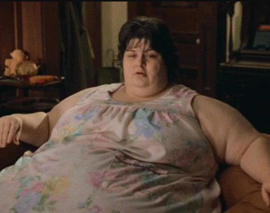 But, when she doesn't style her hair, and is wearing her muumuus, I swear I've walked into the living room before and thought she looked less like a fat femme fatale, and more like a circus/sideshow fat lady, or Bonnie Grape from 'What's Eating Gilbert Grape'. And honestly, I loved it.