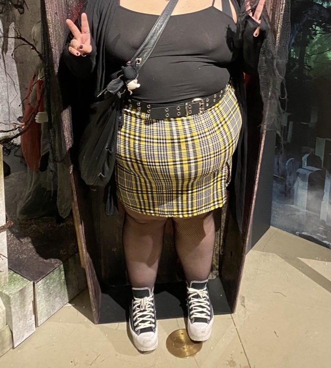For context, she's like a Faye Daniels/Zoey Deschanel type, just a very high-femme & stylish fat lady. Think a pale, goth Roxxie, and you're basically imagining my partner. Really gorgeous face to accompany the amazing bod. Always with amazing style, makeup, and never a hair out of place.