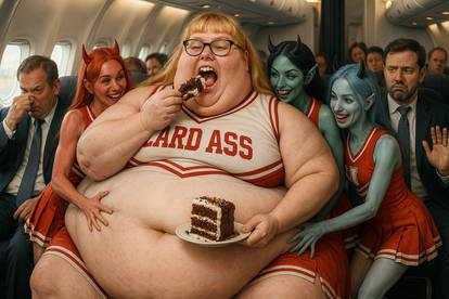 This was a Southwest flight that wasn’t totally full so most middles were open. I get on the plane and by sheer luck, she sat in my row but on the other side against the window. Since it was mostly open I’ll never know if she had the second seat reserved formally, but I’m thinking so. She immediately flipped the armrest up, and once again sat in the seat sideways with her back kind of against the window, pecking at her phone. Only when the door was closed at the last moment did she straighten up. With one gingerly motion, yanked all the slack from the seatbelt and draped it across her huge belly. She immediately dove back into her phone.