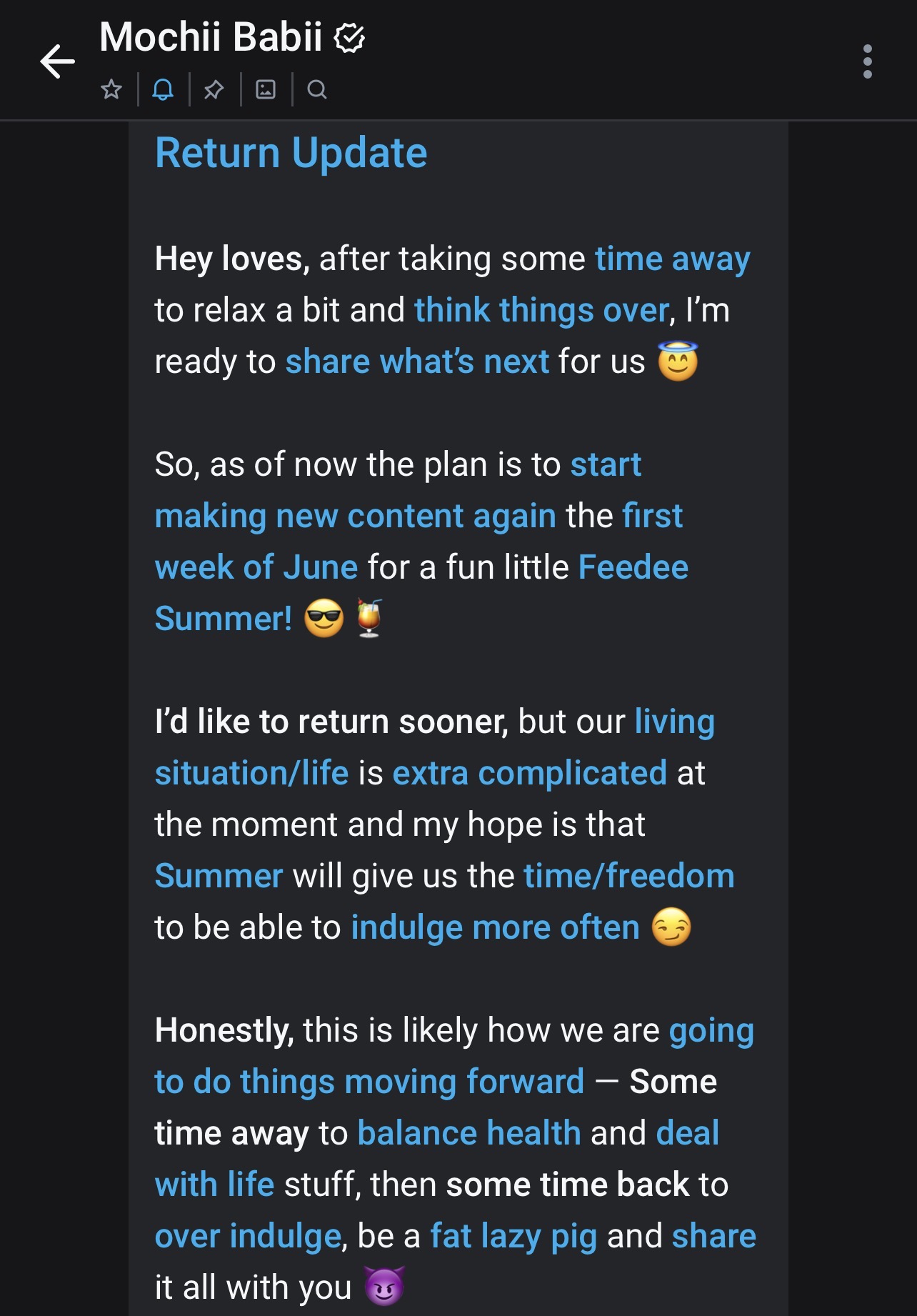 Please take a second to remember how it was during lockdown when we discovered her. She was new and slender, and greedy, and she was a very promising girl. We could feel it from the beginning and we did not get dissapointed. Absolutely dedicated she was, gaining superfast despite being asian who have the toughest genetics in terms of gaining weight.. She delivered. All the fucking time. During lockdown we dreamt about women being stuck at home and gaining to ridicoulus proportions due to be forced to do nothing but eat, like in a fictional weightgain shortstory. While most of the "feedee-scene-women" that were around that time tried to pretend to do this ultimate fantasy, Mochii was the only one who actually delivered. To the fullest. I especially loved how incredibly far fetched this fantasy was and that she still managed to fullfill it. I mean, look at her now, still in the scene, still surprising you with every video to a shocking extend, still devouring food like a machine. Her dedication is uncomparable in my opinion, and she deserves to be sitting on the throne of the feedee queen for the next legislature period, too. I want to see her swelling fatter and fatter everytime a new vid comes out, and I wanna see her enjoy it still, besides her efforts and side-effects. Let us unite and make this happen and let us support her, guys! The outcome is gonna be the ultimate of what you want to see all the time in your fantasies all the time, pure gluttony! What is there to argue? Let us enjoy her getting fatter by her enjoying all the things she wants to enjoy!