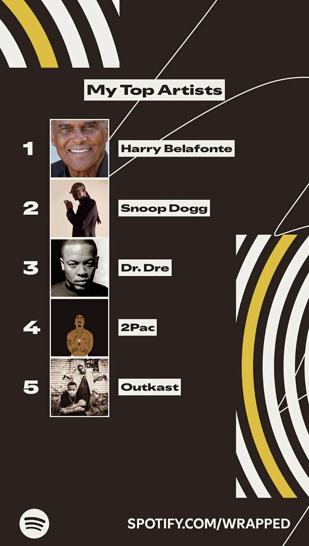 Her top artist is Harry Belafonte, huh? What does this say about her?
