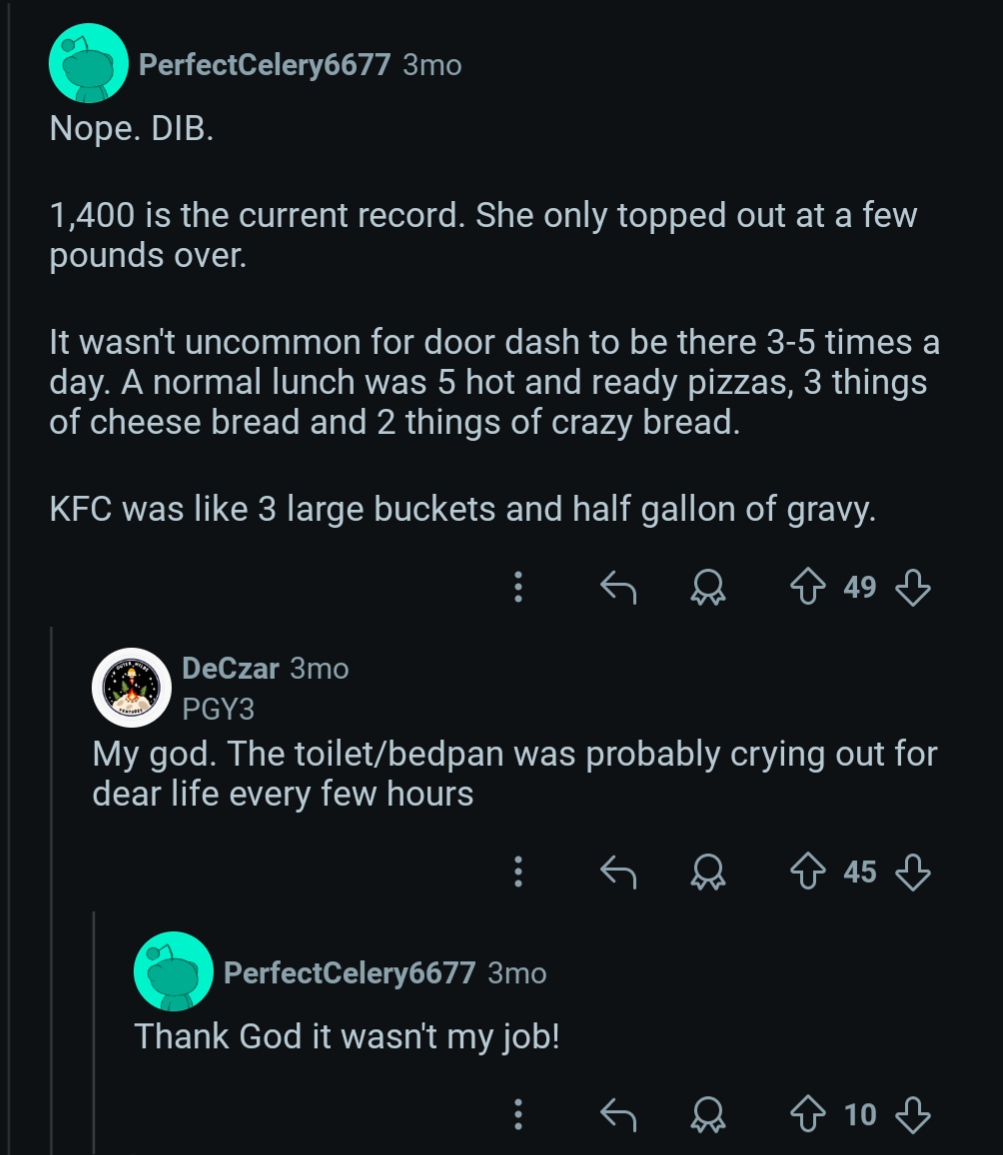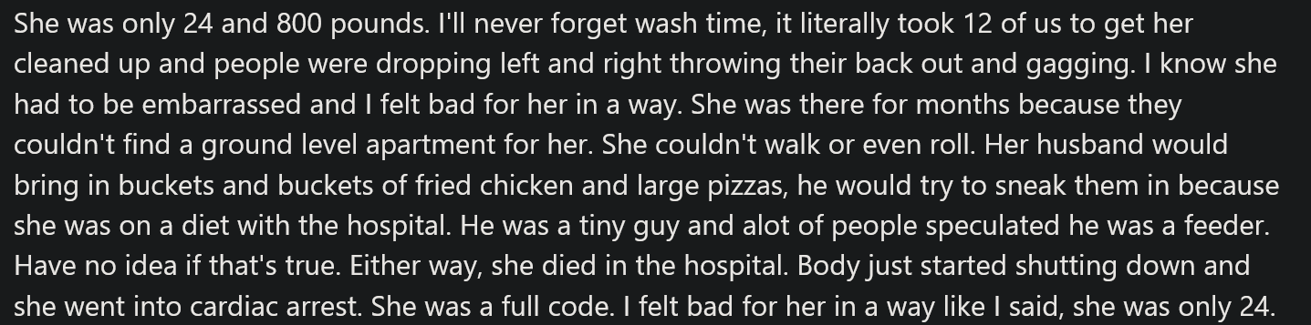 For my experiences of very fat girls here, one time when i was in a city of about 30k people, i saw this maybe 22-26yo with a pretty face, definetly over 400 pounds with a massive gut almost hanging to her knees, clearly visible through her leggings, she was waddling along a roadside and i saw how she had to stop a few times, lean against a lamppost just to catch her breath, it was wild.