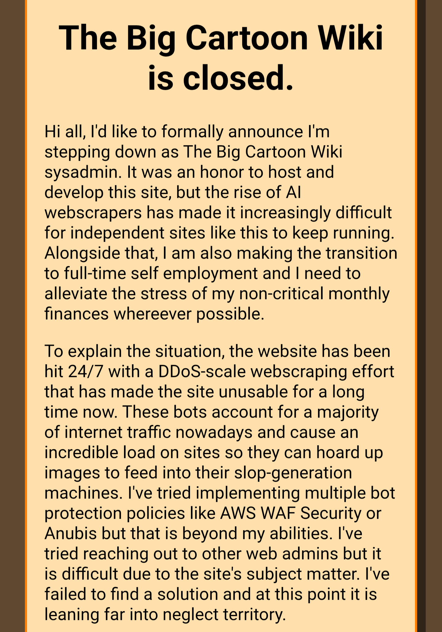 Big Cartoon Wiki Shutting Down Anonymous 03/24/2026 (Tue) 13:35:08 Id:1d9331 No. 82039