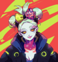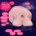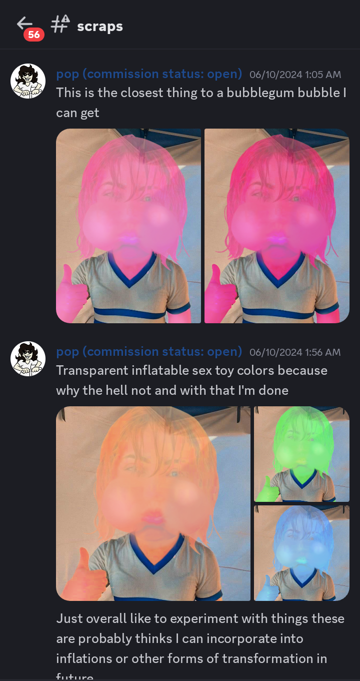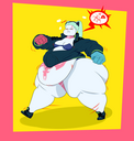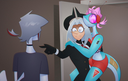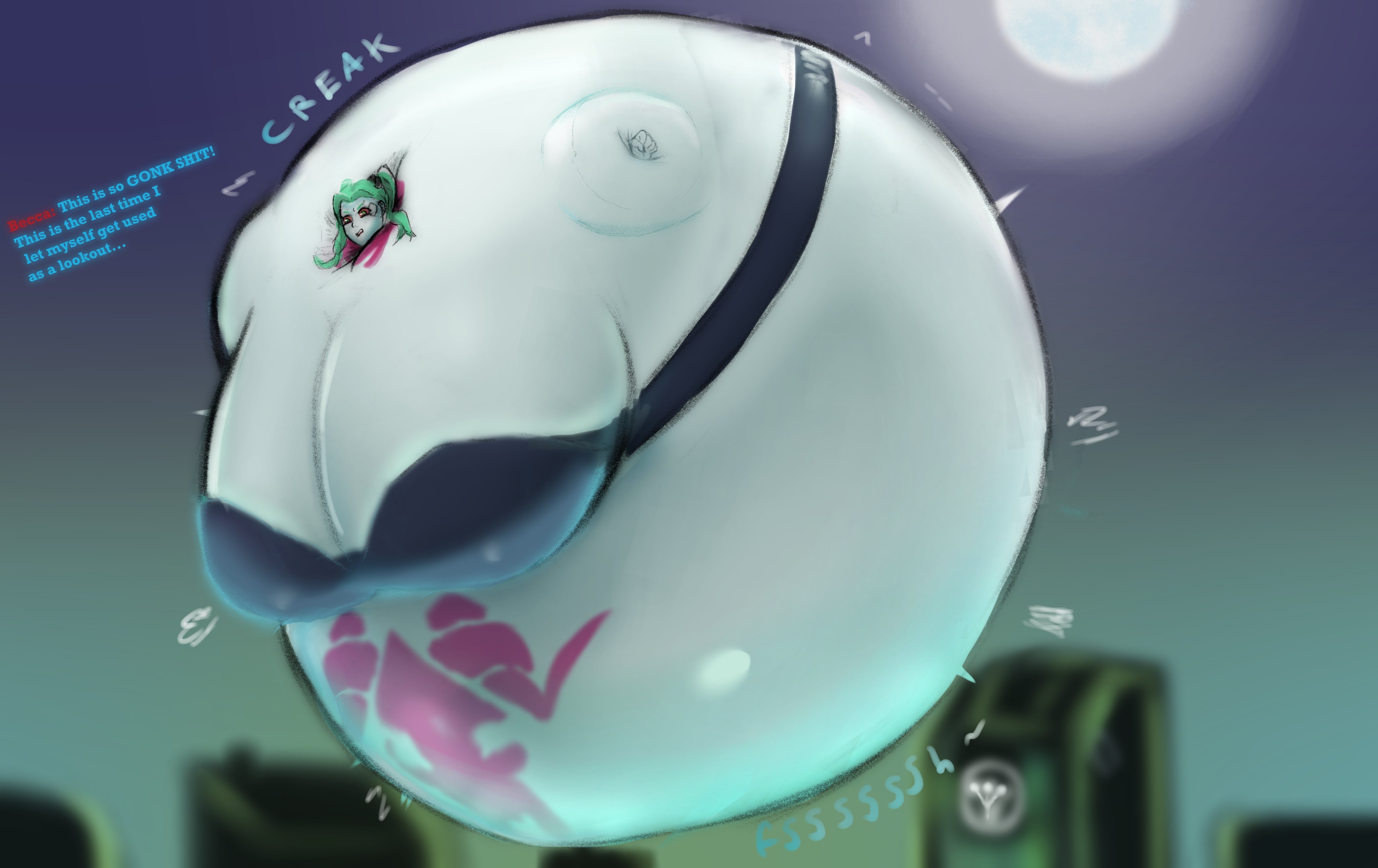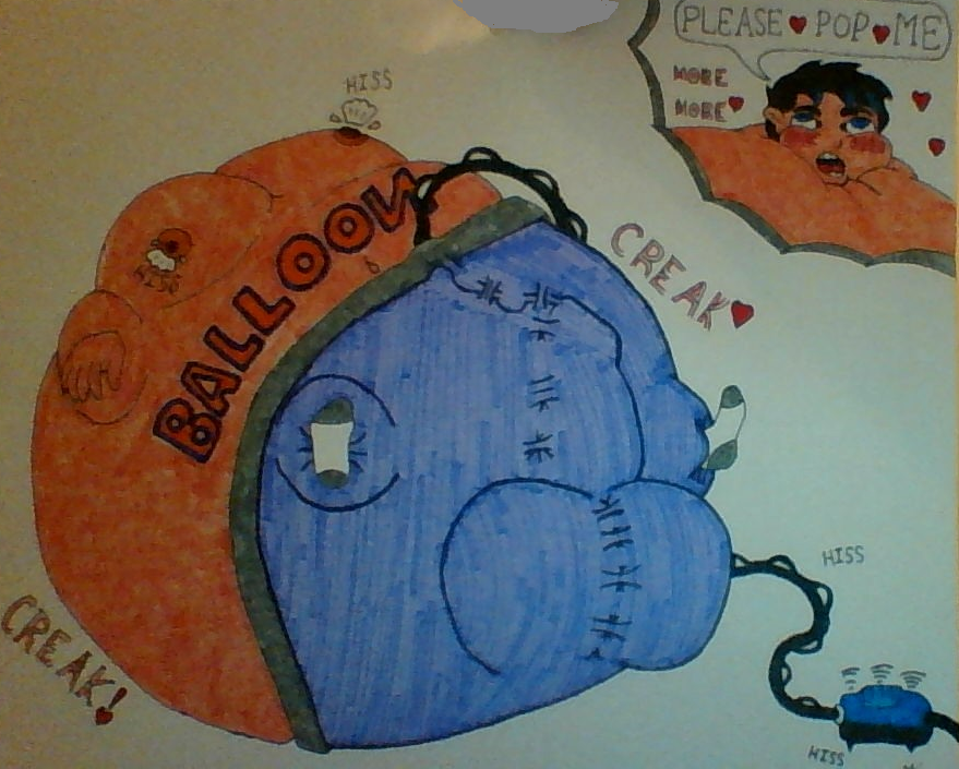 Good day. Once upon a time i had seen a picture of GrossPierrot's character Bev being inflated through means of bicycle pump by the character with horns from the picture (or some other extremely similar character). Bev had been held by strange hand-like contraption (by limbs, iirc) wih her mouth taped, on the left side of the picture, that character with horns was on the right part of the picture, separately.
