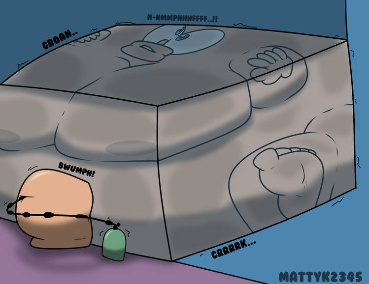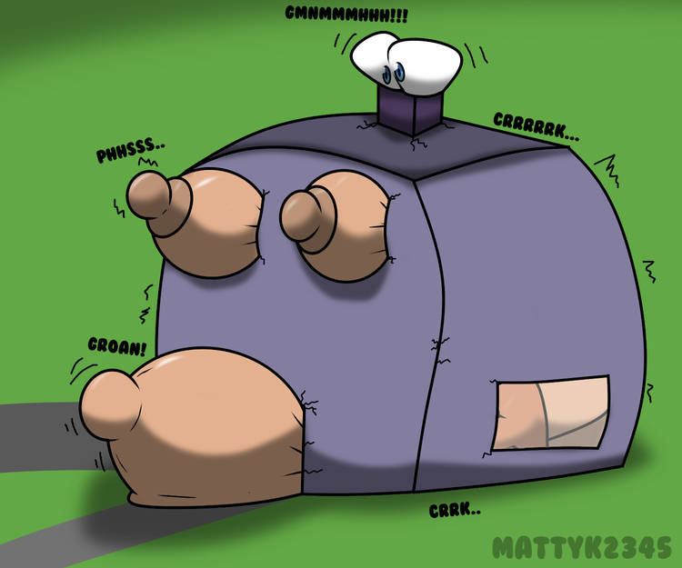 Weirdly specific, I know, but I have a thing for when inflated characters have to roll around or otherwise struggle with the lack of mobility being spherical gives you. Male OK