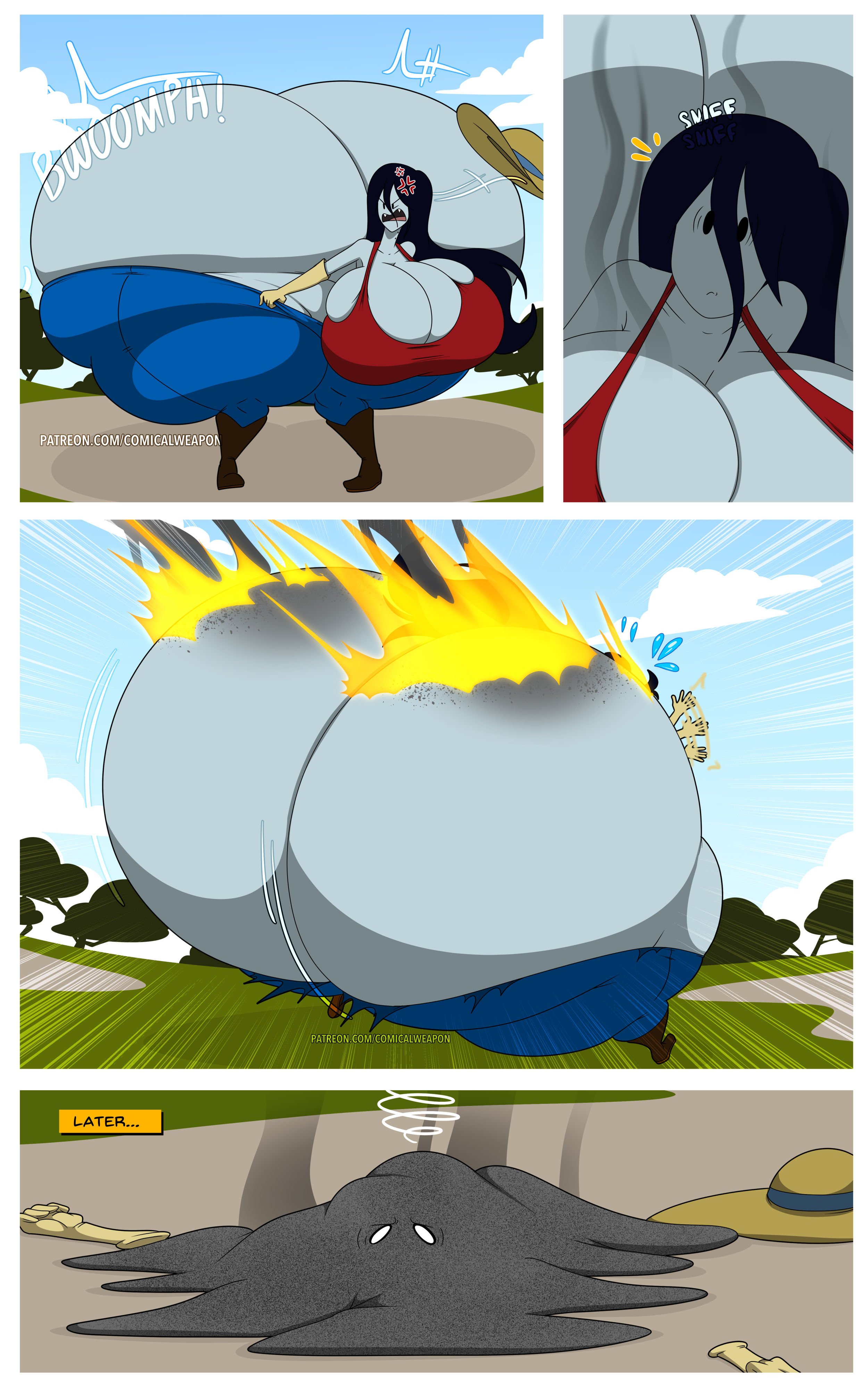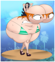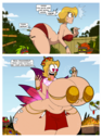 She takes a drug called "MILF Up". She grows giant lactating tits, and super wide hips. So wide we get a short cameo of Mrs. Incredible and Mavis hip checks Mrs. Incredible out of the comic strip.