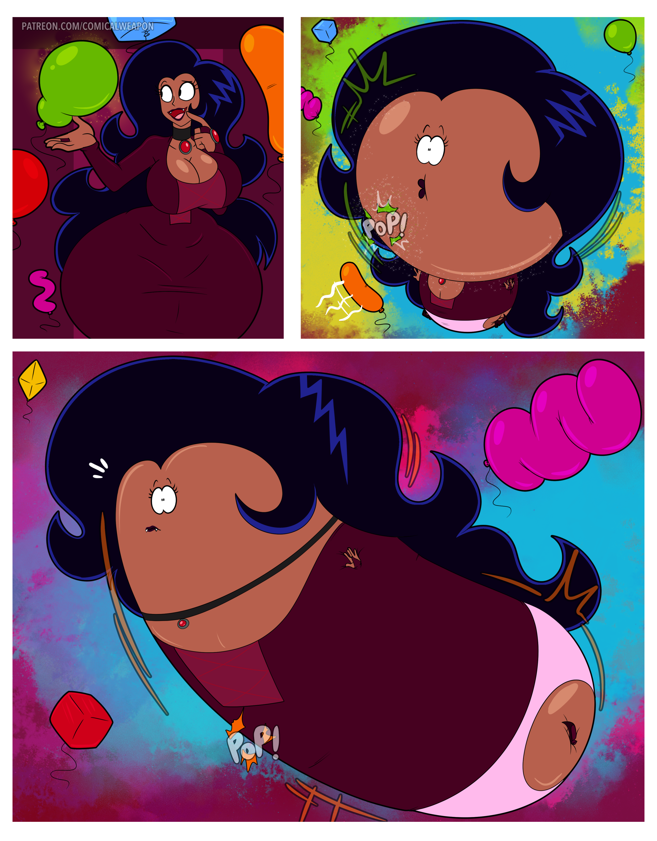 Mavis has it where she get flatten and the evil hands use a special pump to inflate her back to size. However this pump not only brings her back to shape, it starts to make her more milf shape and even make her lips swell. She grow to be giant fat milf size. A special new slushie that she drinks starts to turn her red and inflate her into a big inflatable cherry mom. Another new slushie she drinks fattens her up and makes her more milf shape.