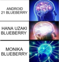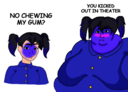 Does anybody have the memes of the blue hair whack girl inflating people?