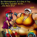>>138976 Burp and explode. No visual transformation. SPOILER ALERT: In-game she gets infected, but she still have time to find a cure. So she's just constantly burping while you play during a mission. Unfortunately no POV belly expansion or anything.