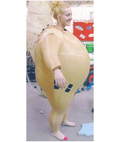 Gokuu Densetsu: Magical Beast Warriors: This is a psx obscure fighting game wich one of the characters can inflate his opponents, in here we can see him inflating the Nezha Gal