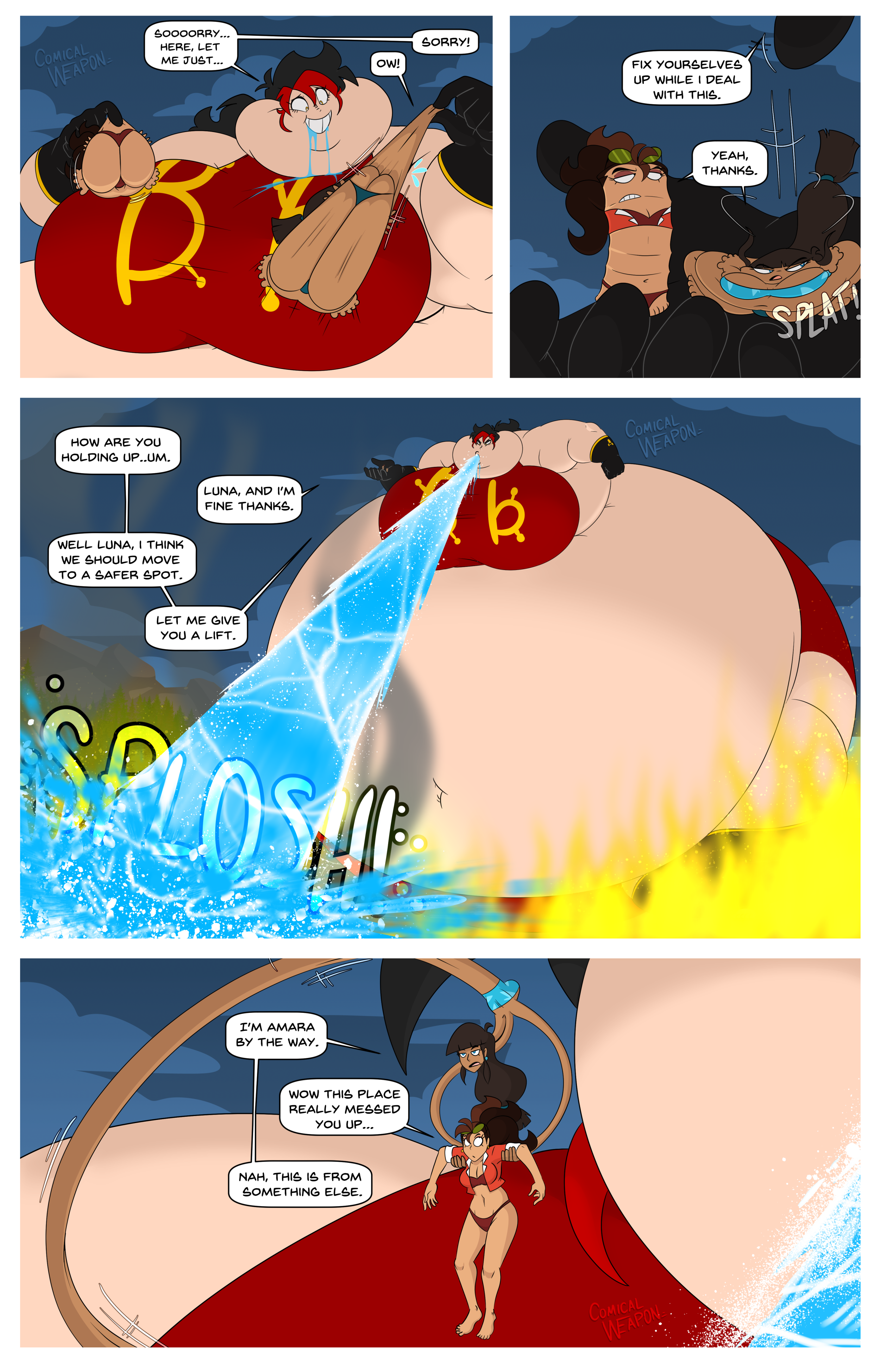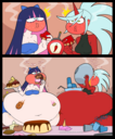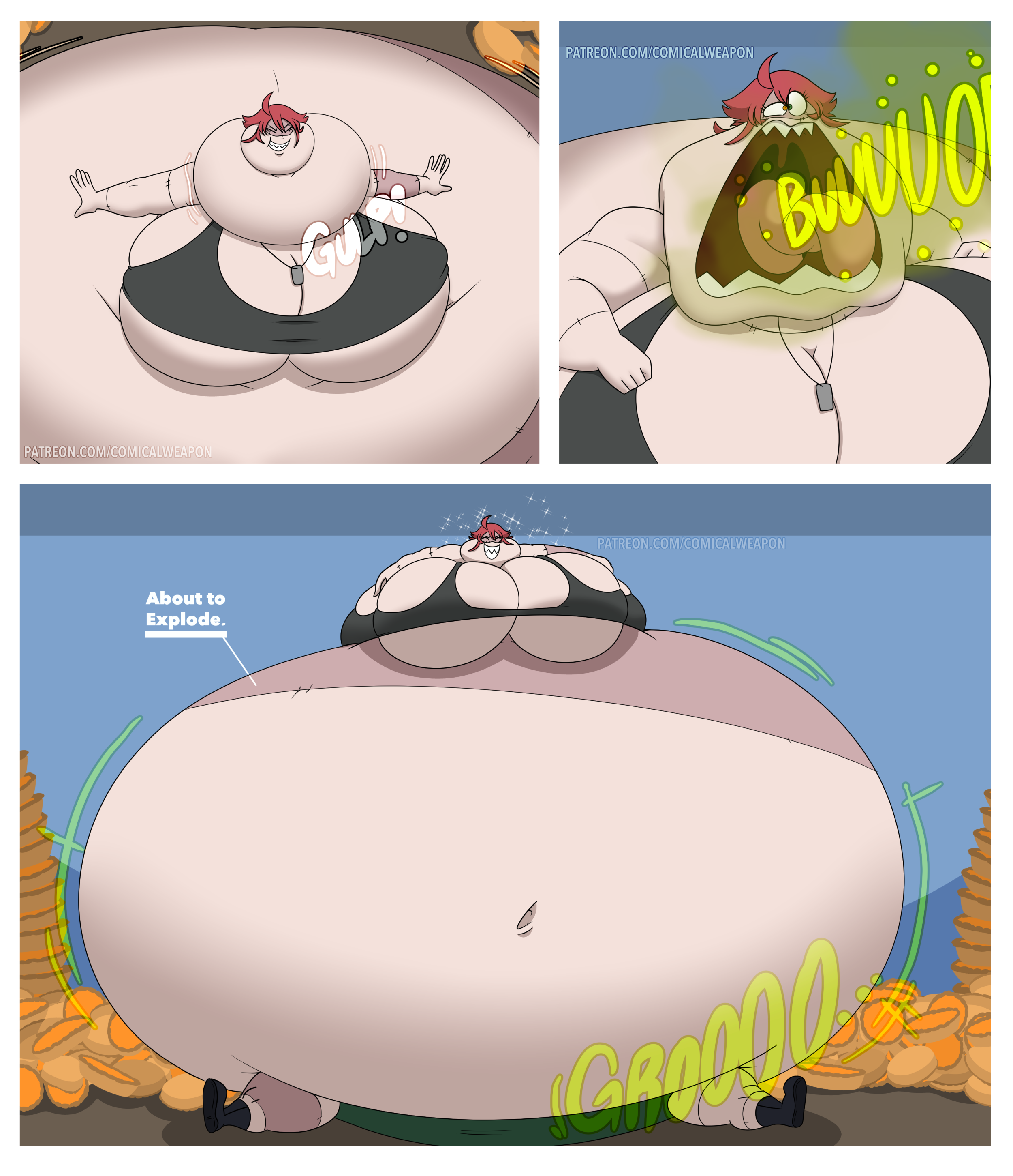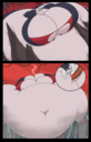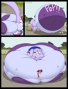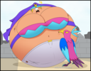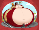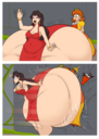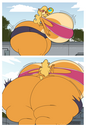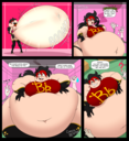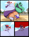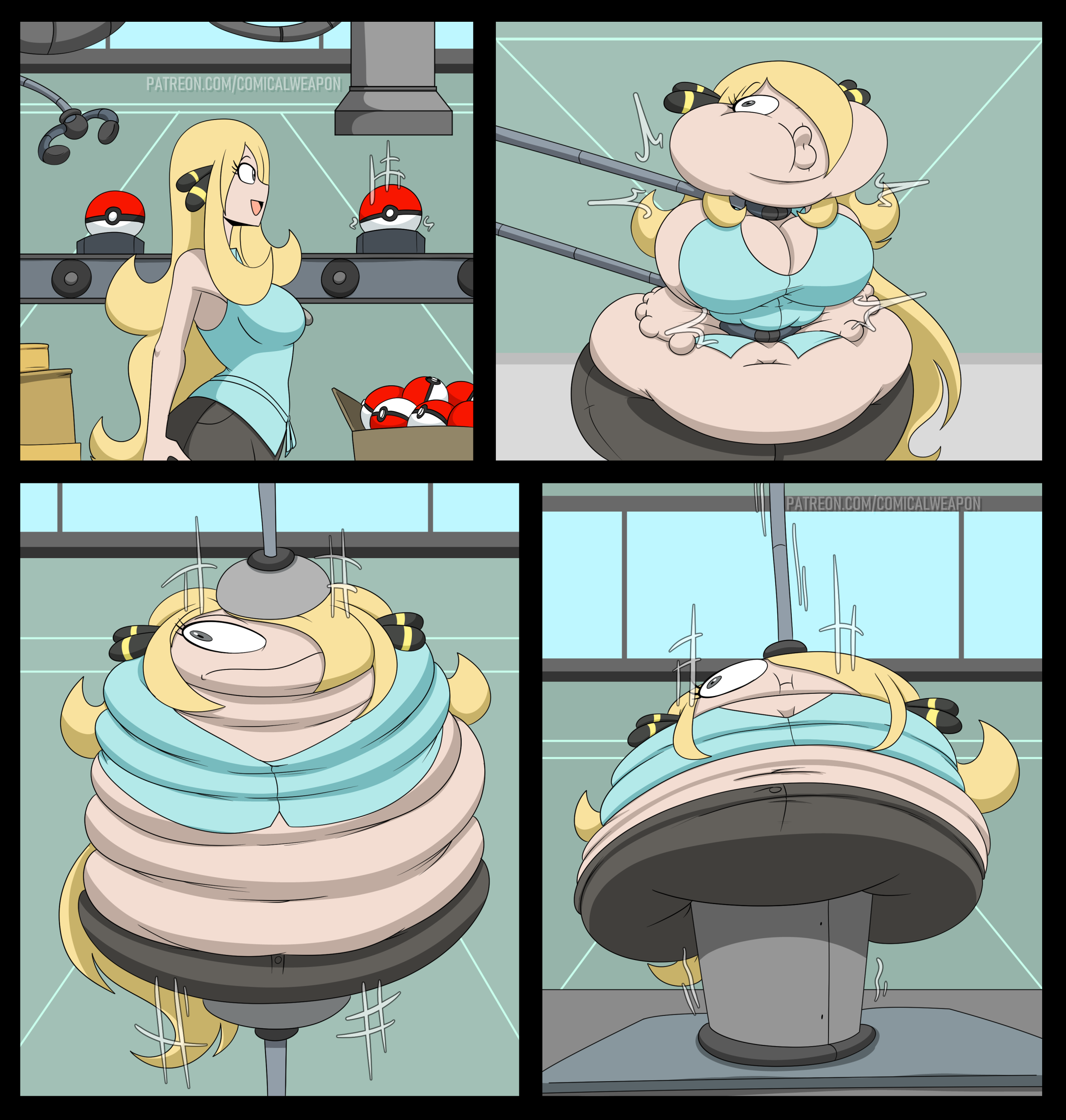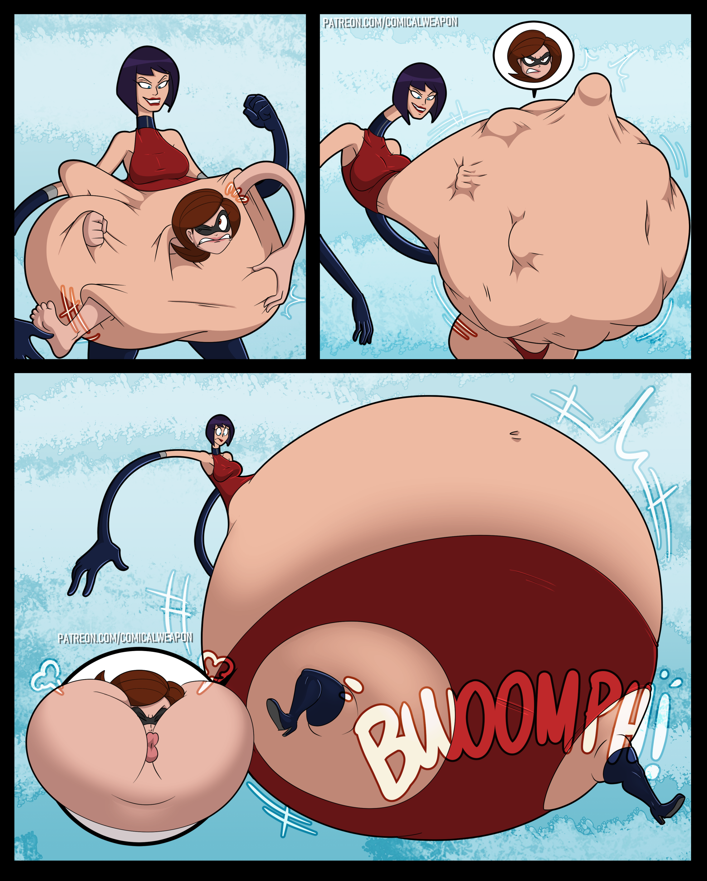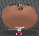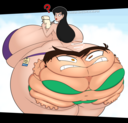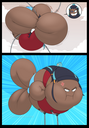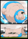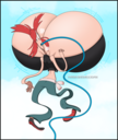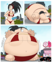 After her first fight with Roberta. Revy decides it's time to build some more muscle. So she goes to a gym and she starts lifting weights but nothing is working until she sees a unique piece of work equipment. She remembers seeing it tiny toon adventures it was the same machine that inflated hamton with muscles so Revy puts on an evil grin and starts using. Once she buffed up she imagines the look on Robertas face when she sees her. Unfortunately Revy Started to get more inflated she looks down and Sees Roberta Pumping her up more until she looks exactly like hamton when buster and plucky inflated him. As Revy Floats Roberta pulls out a Pin and pops her Revy is Back to normal and Dizzy as Roberta Laughs At he