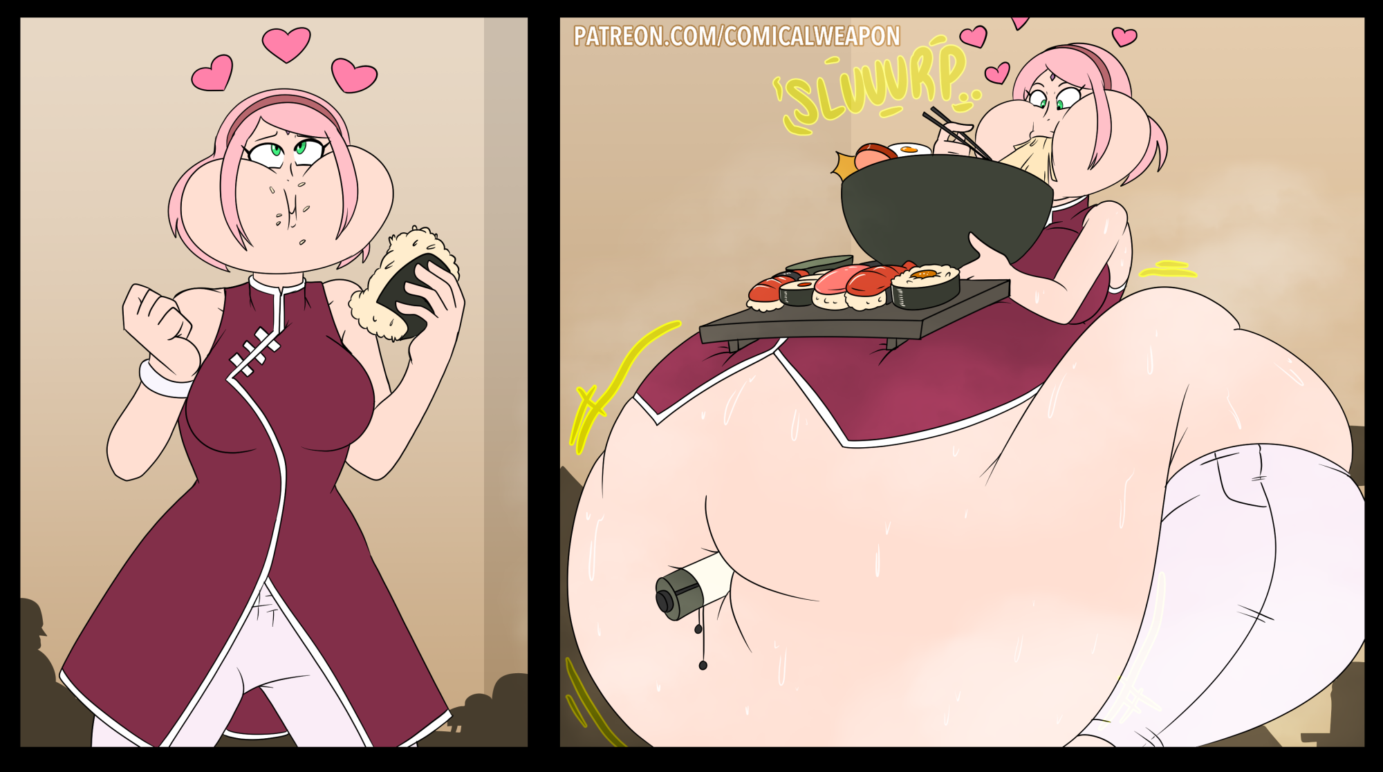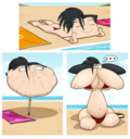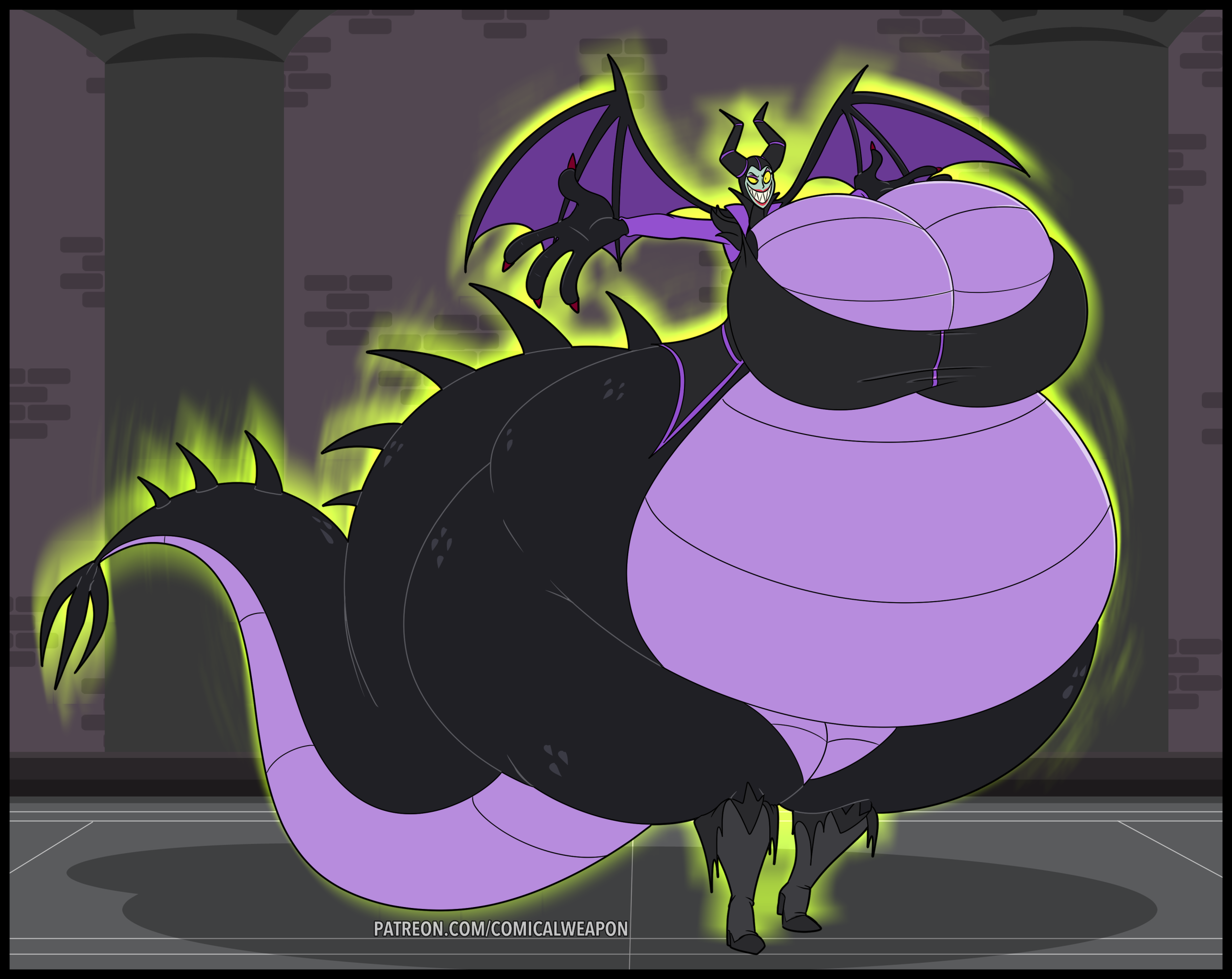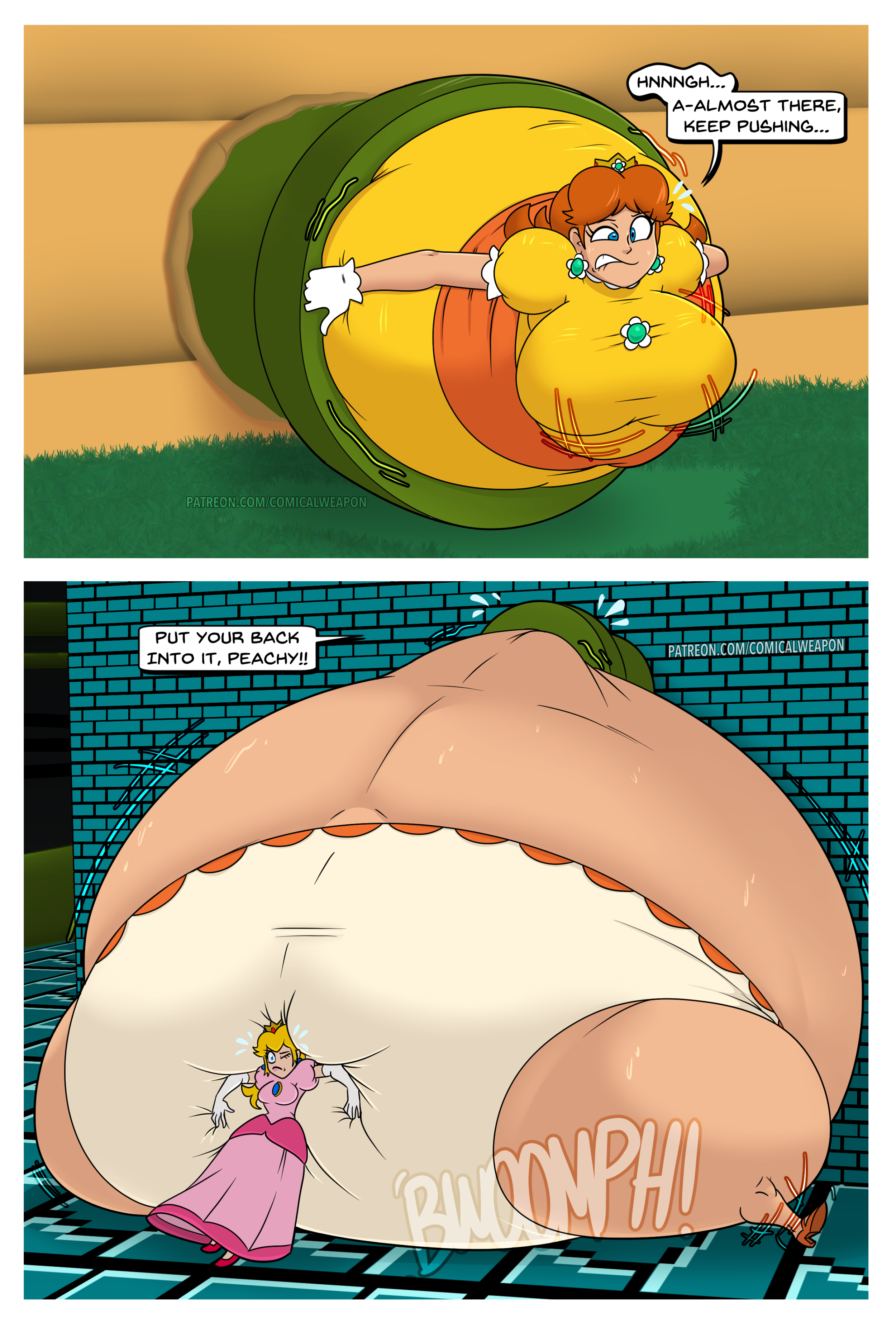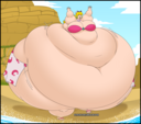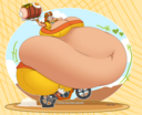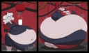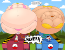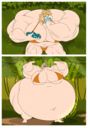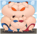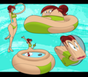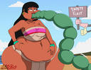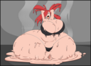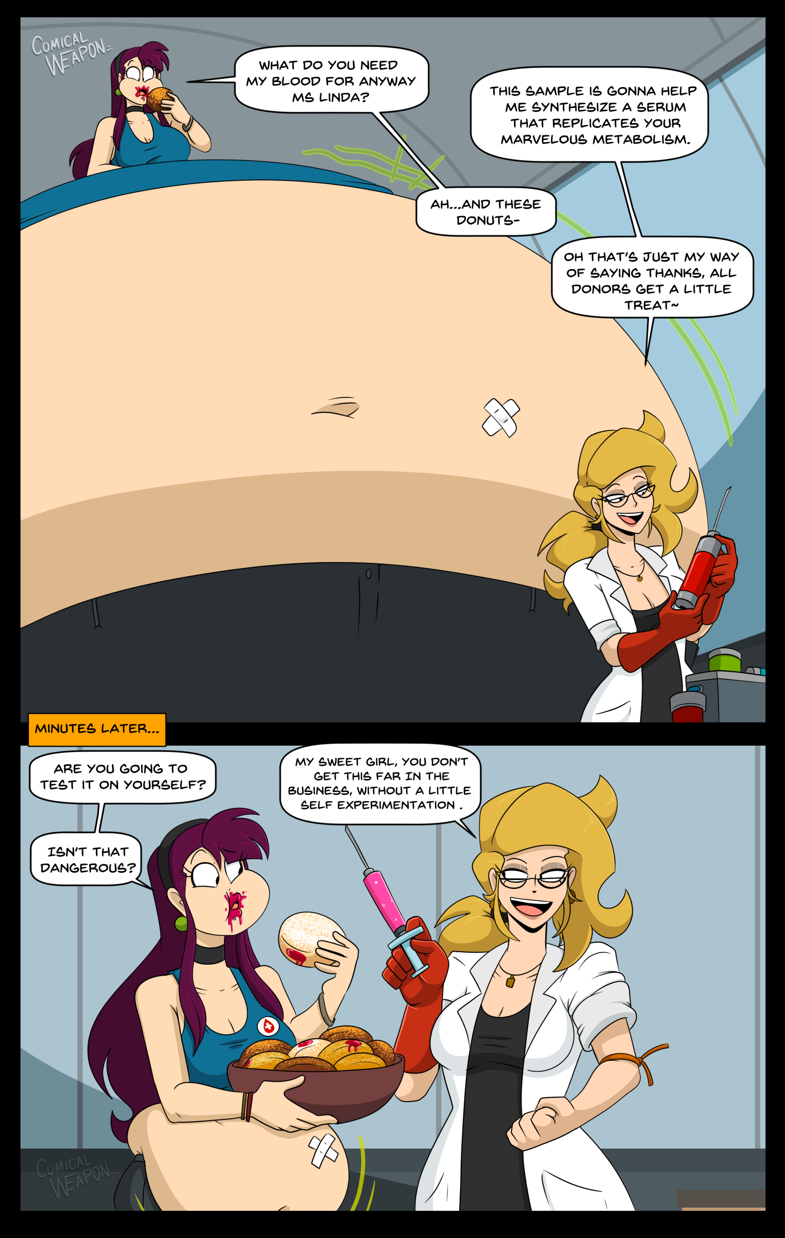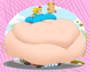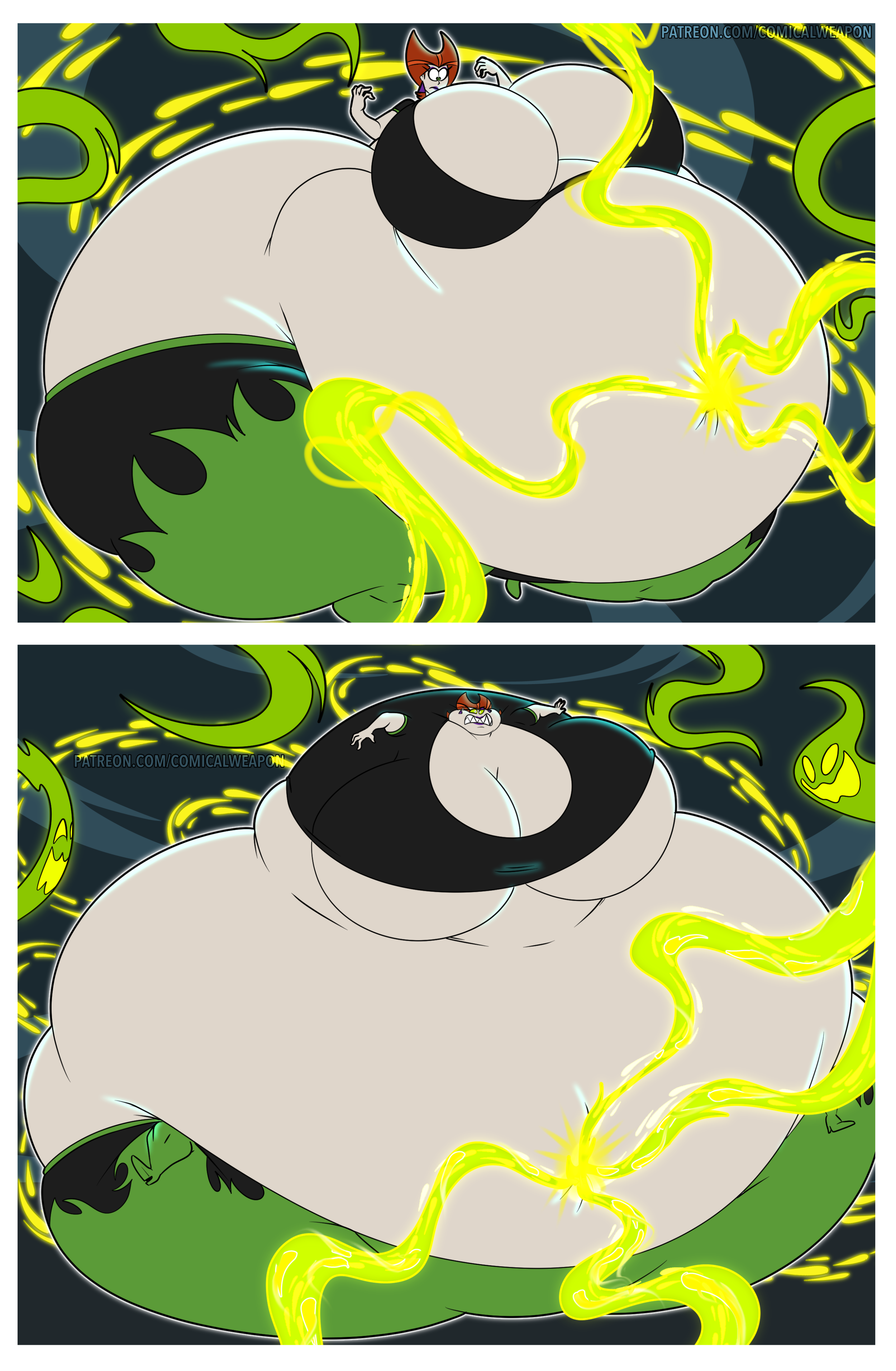 After her first fight with Roberta. Revy decides it's time to build some more muscle. So she goes to a gym and she starts lifting weights but nothing is working until she sees a unique piece of work equipment. She remembers seeing it tiny toon adventures it was the same machine that inflated hamton with muscles so Revy puts on an evil grin and starts using. Once she buffed up she imagines the look on Robertas face when she sees her. Unfortunately Revy Started to get more inflated she looks down and Sees Roberta Pumping her up more until she looks exactly like hamton when buster and plucky inflated him. As Revy Floats Roberta pulls out a Pin and pops her Revy is Back to normal and Dizzy as Roberta Laughs At he