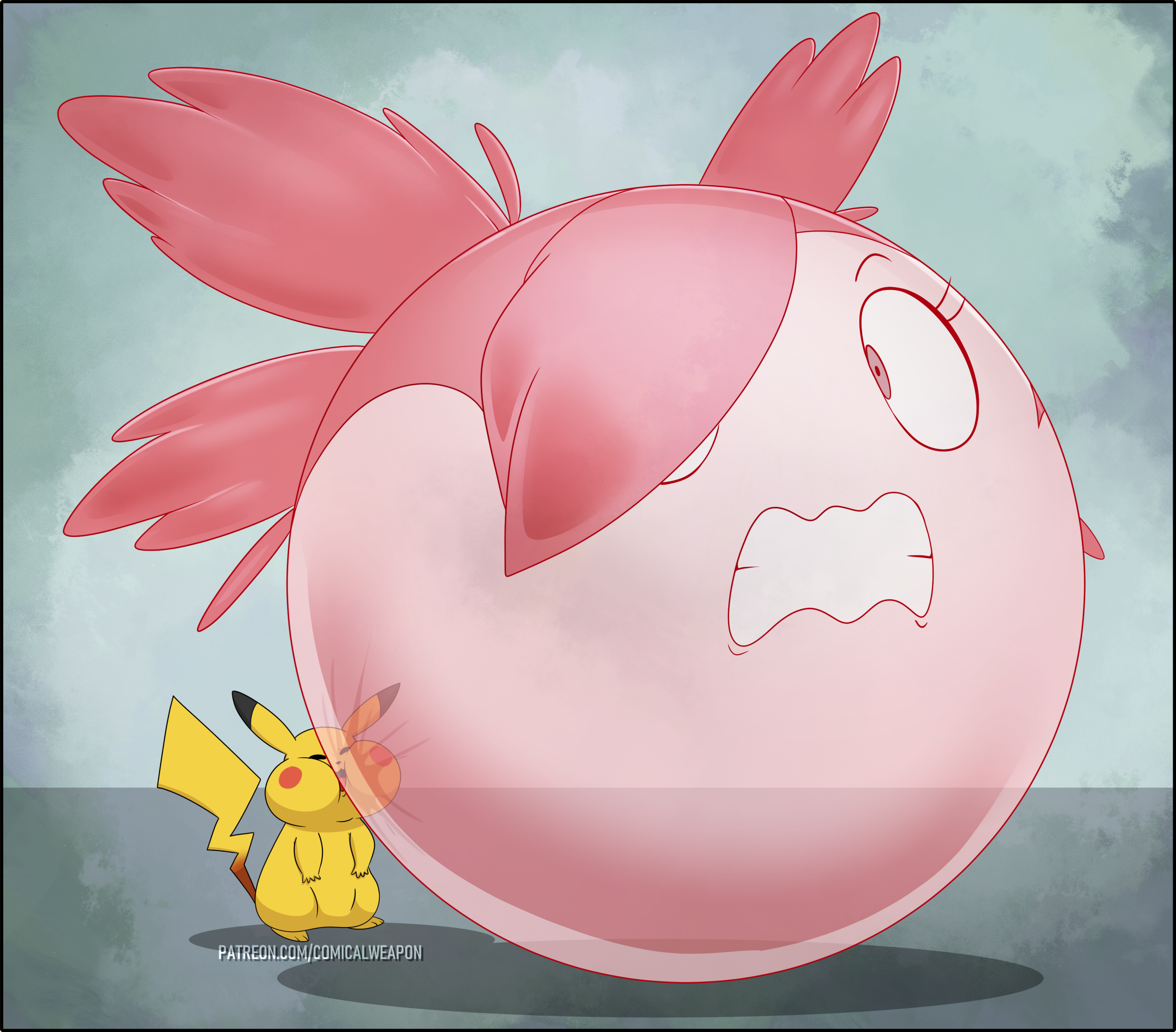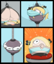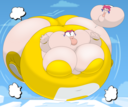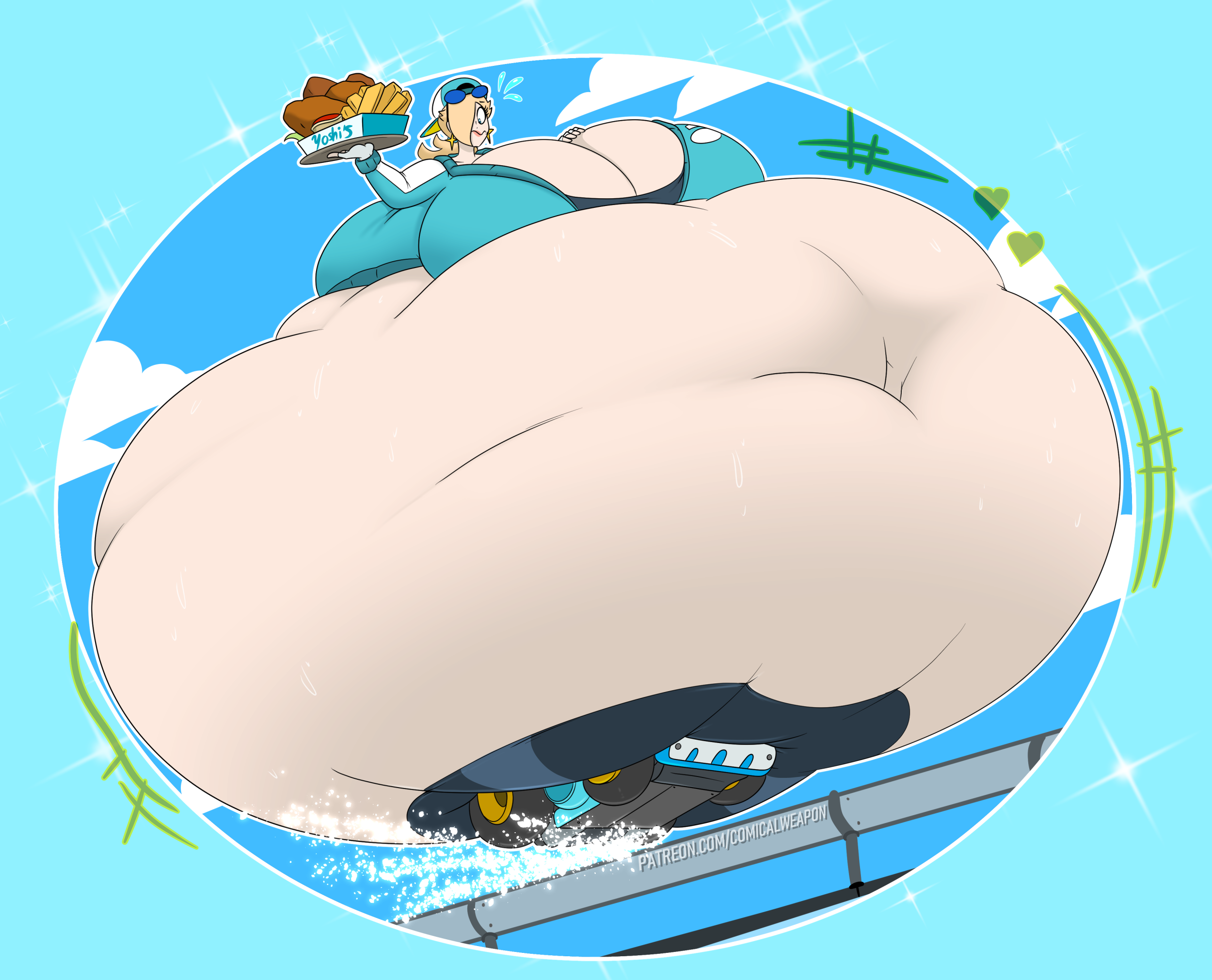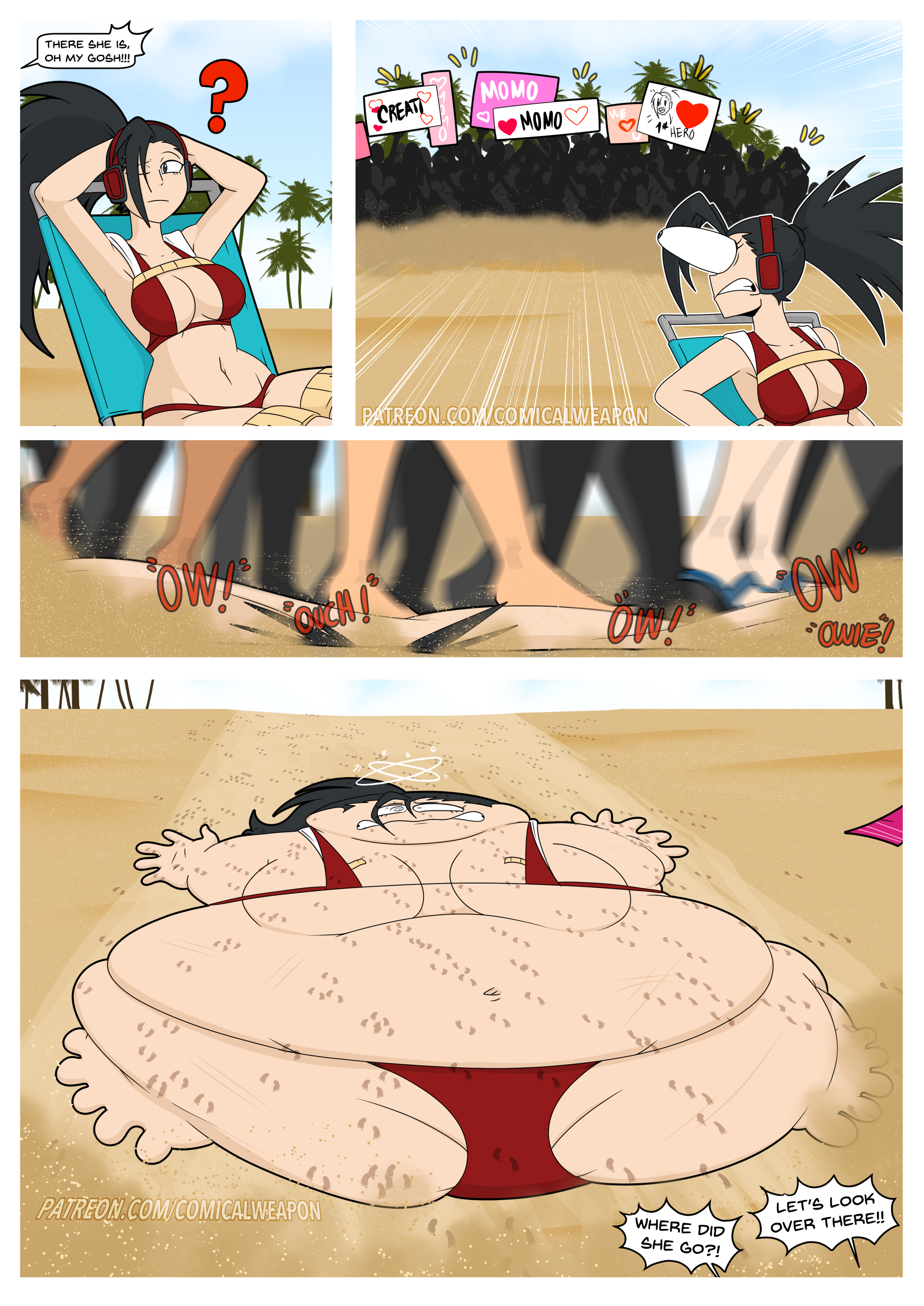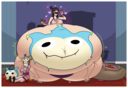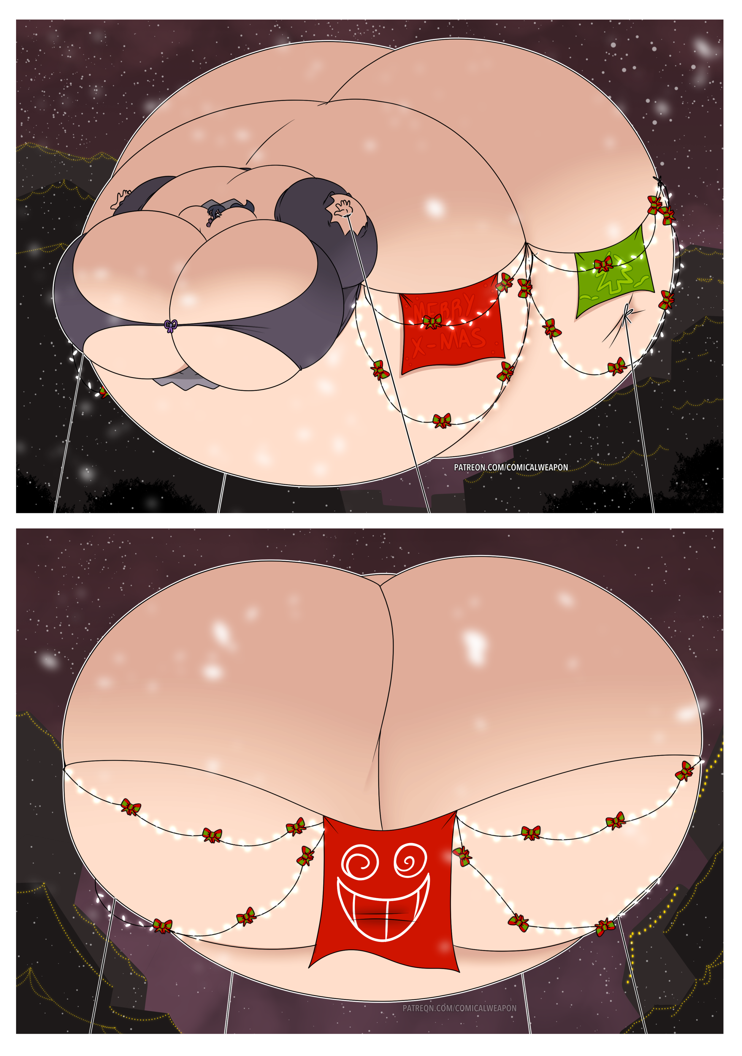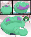 Revy attends a parade, but she's super bored. while she's standing there sulking, she spots the evil hands up to something. she follows them into a warehouse where they slam the door shut and zap her with a ray that causes her to inflate into a smiling parade blimp. Then the hands tie ropes to her inflated hands and feet and float her out the top of the warehouse, where she becomes part of the parade herself. The crowd cheers as her blimped body is paraded in front of everyone, and her expression in the thought bubble shows she's not only embarrassed, but more than a little annoyed at her predicament.