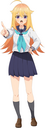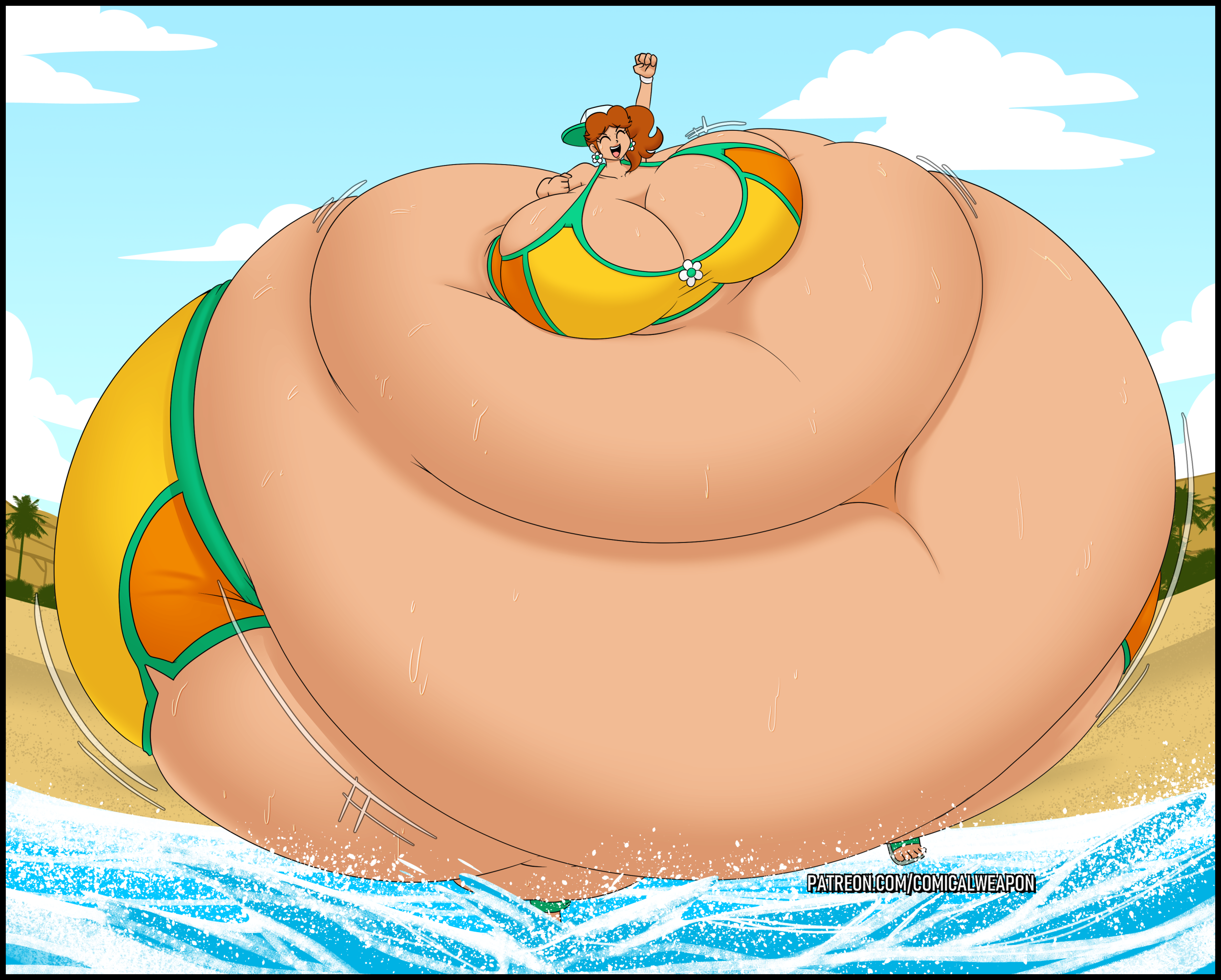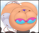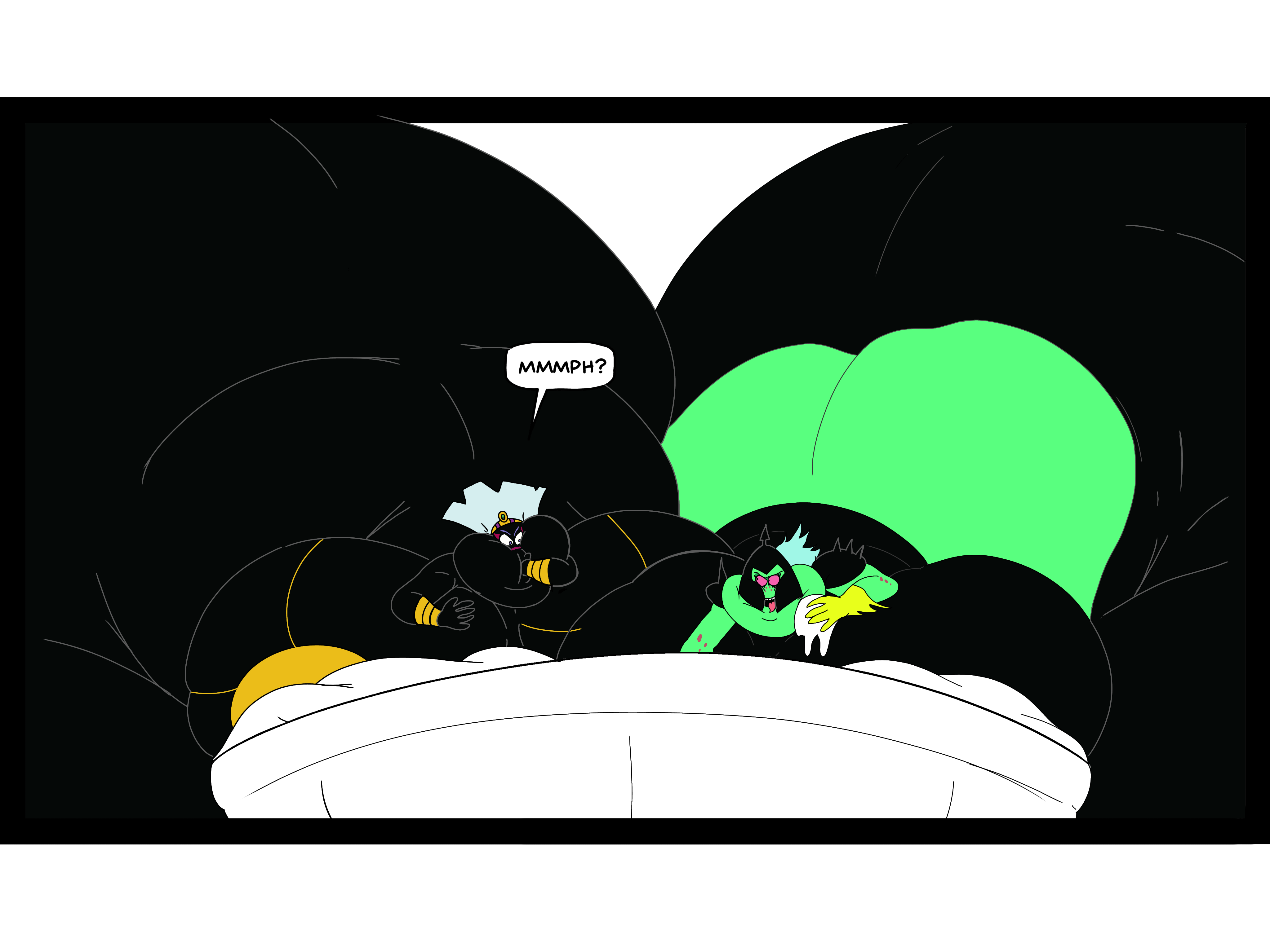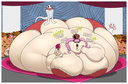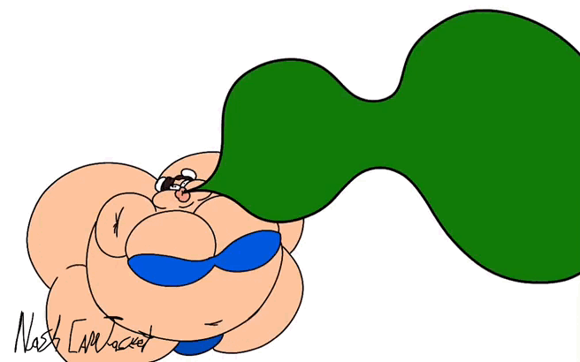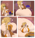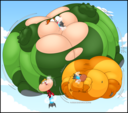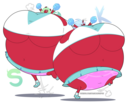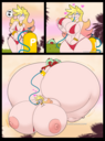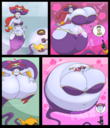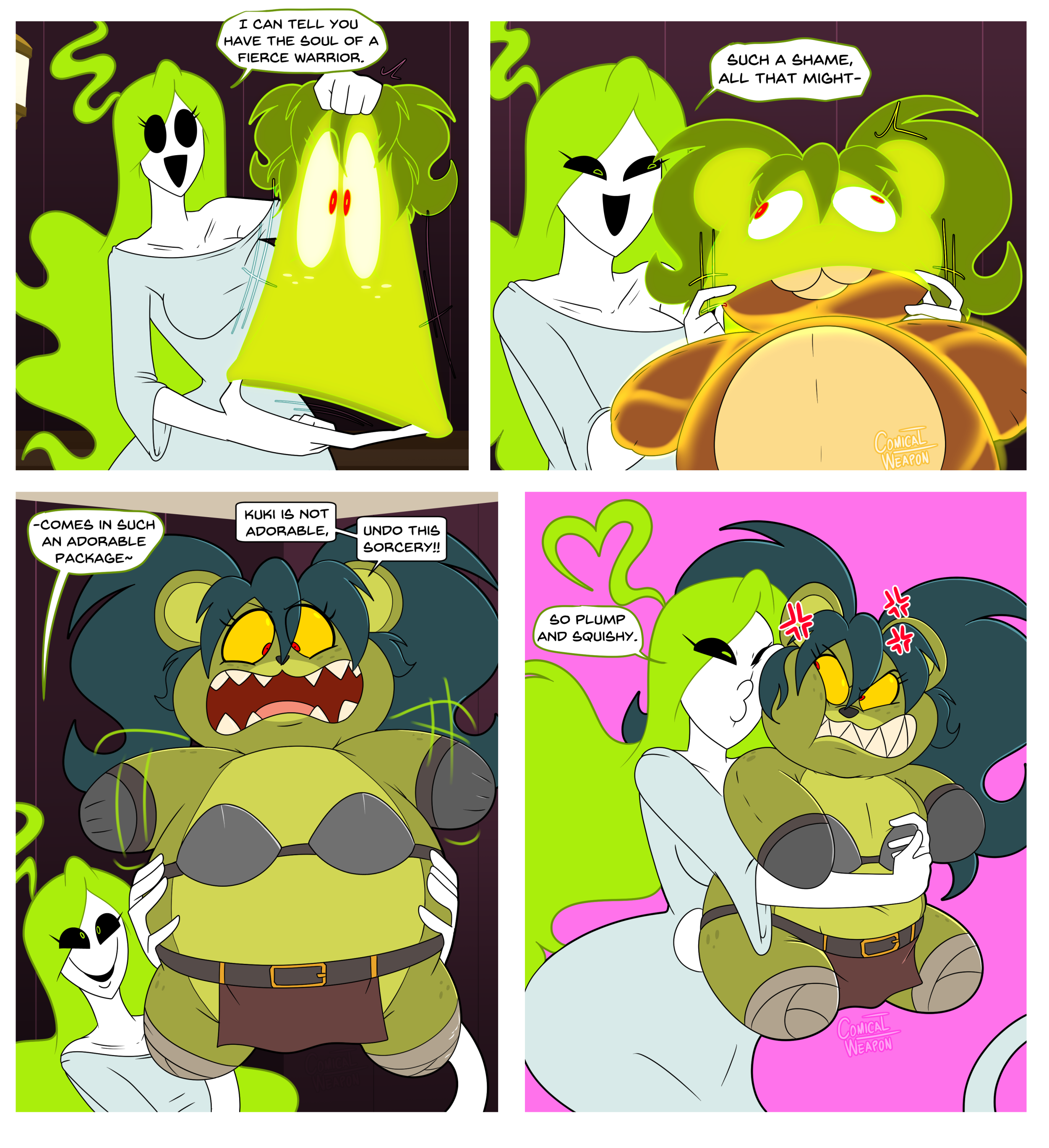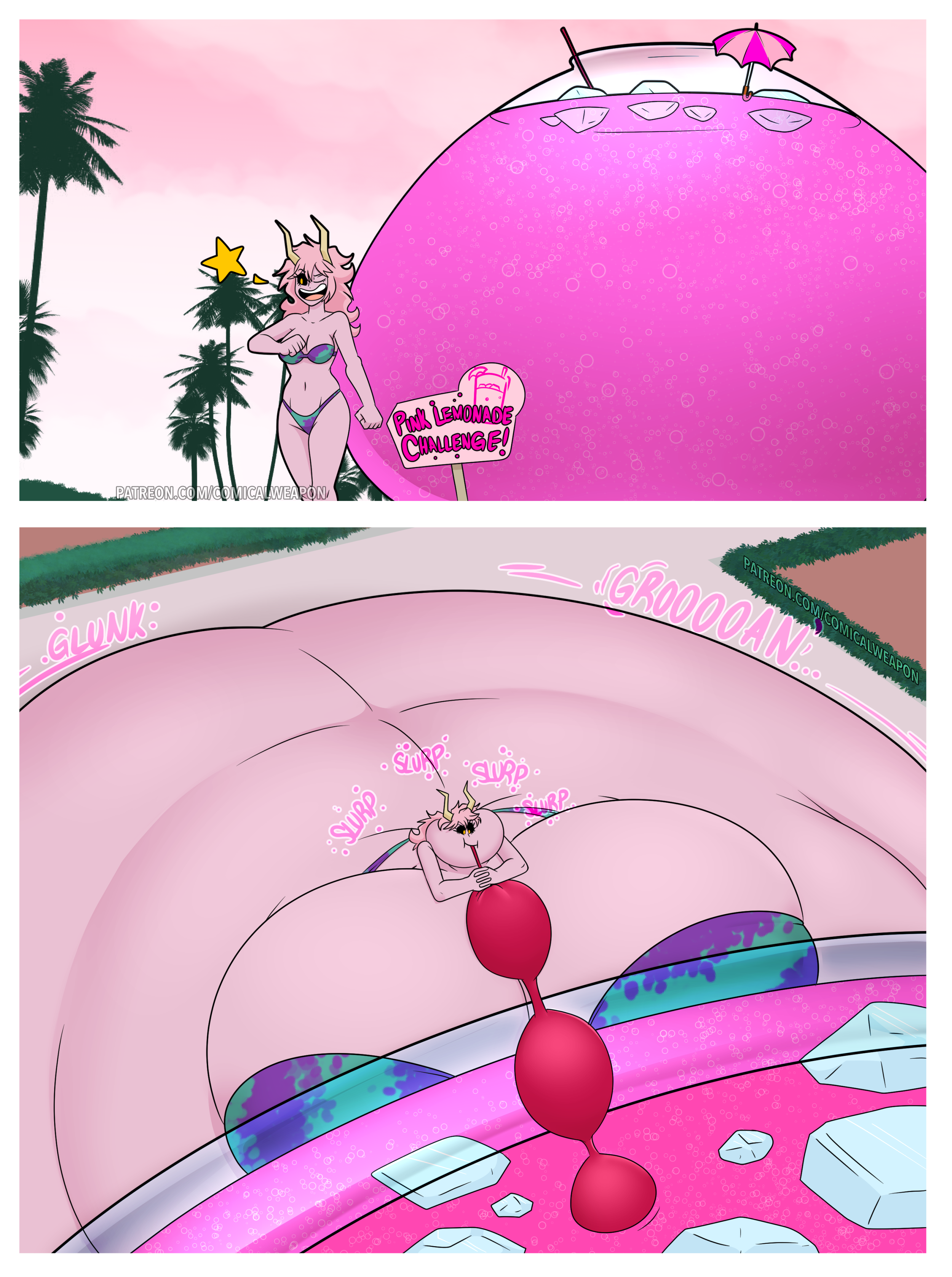Revy attends a parade, but she's super bored. while she's standing there sulking, she spots the evil hands up to something. she follows them into a warehouse where they slam the door shut and zap her with a ray that causes her to inflate into a smiling parade blimp. Then the hands tie ropes to her inflated hands and feet and float her out the top of the warehouse, where she becomes part of the parade herself. The crowd cheers as her blimped body is paraded in front of everyone, and her expression in the thought bubble shows she's not only embarrassed, but more than a little annoyed at her predicament.