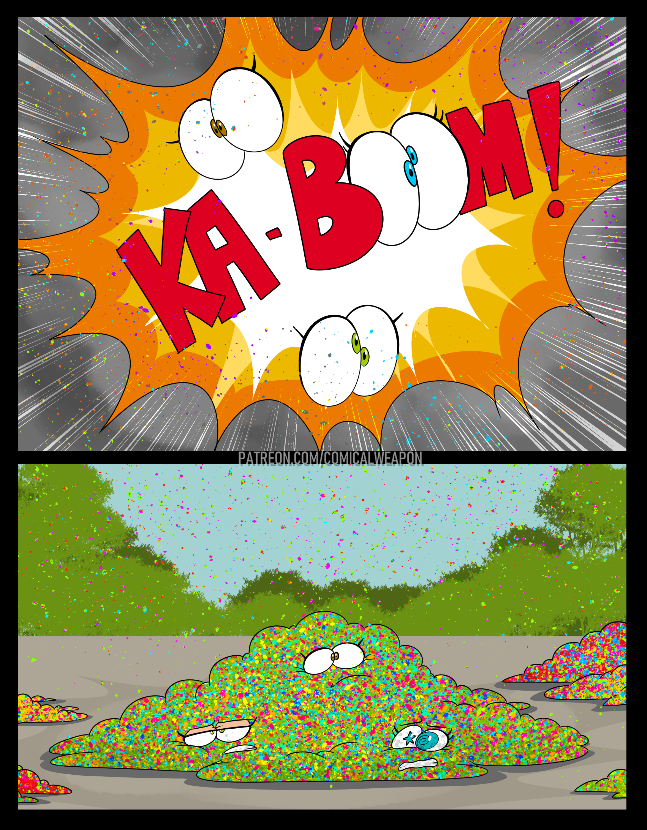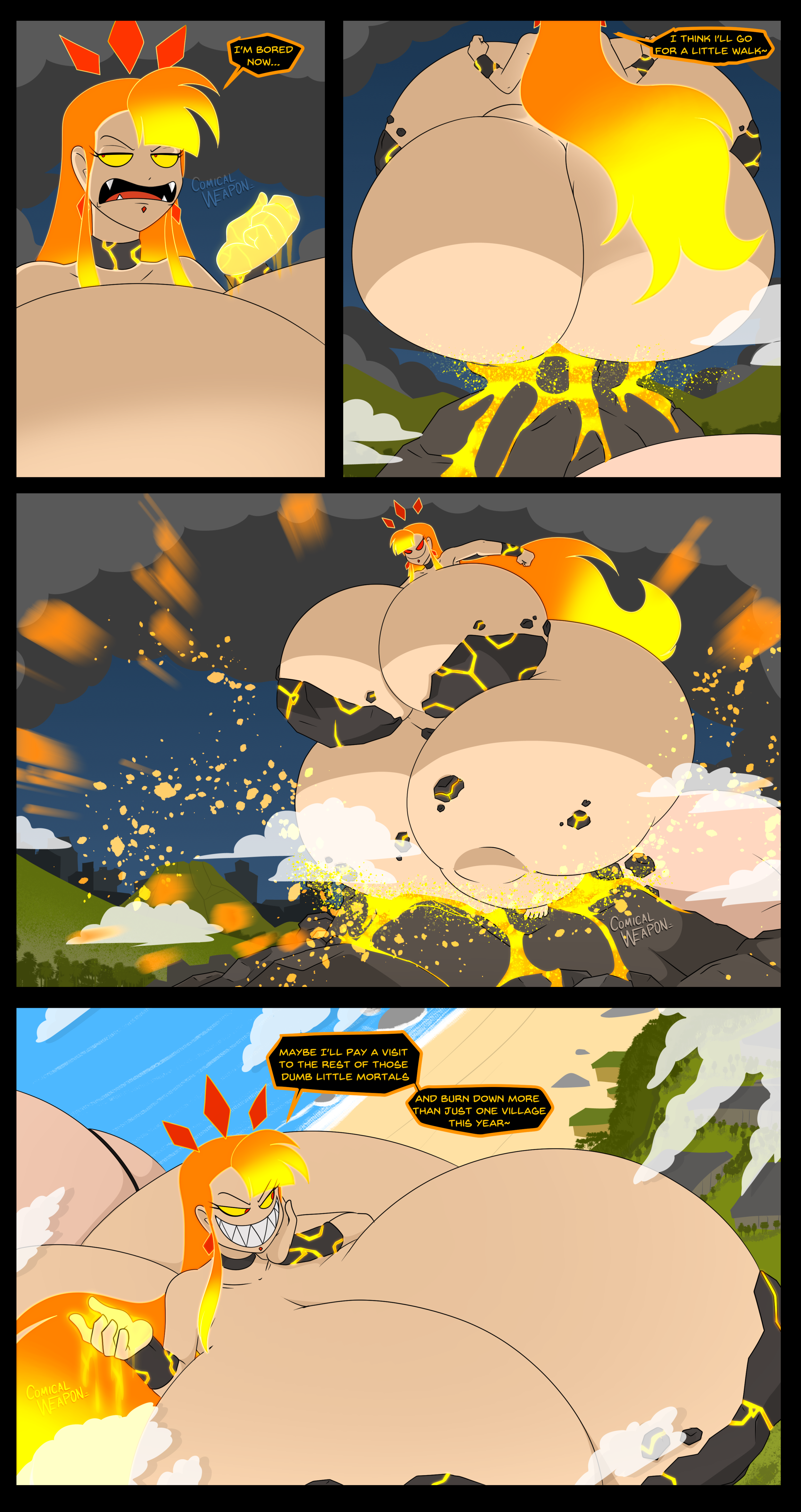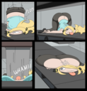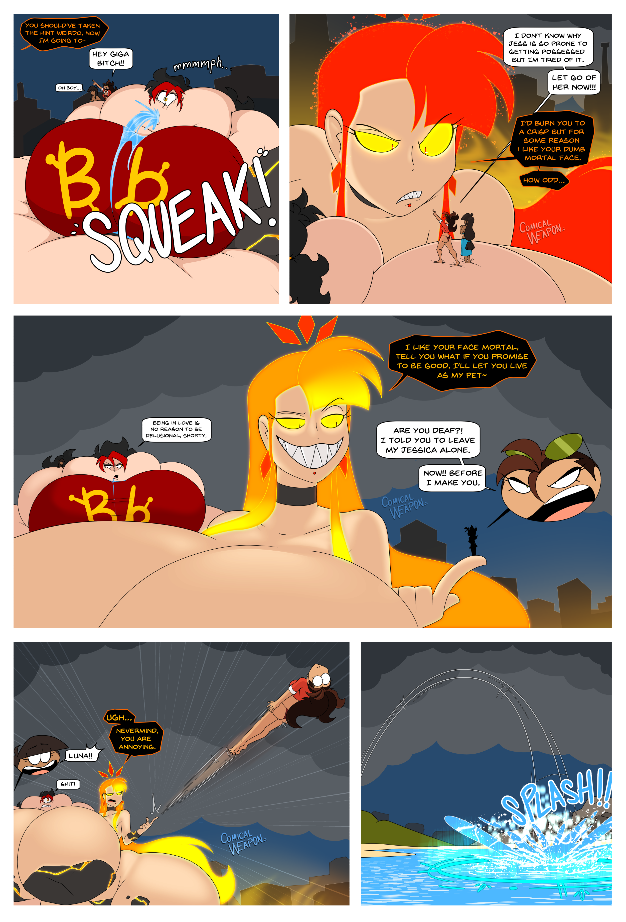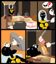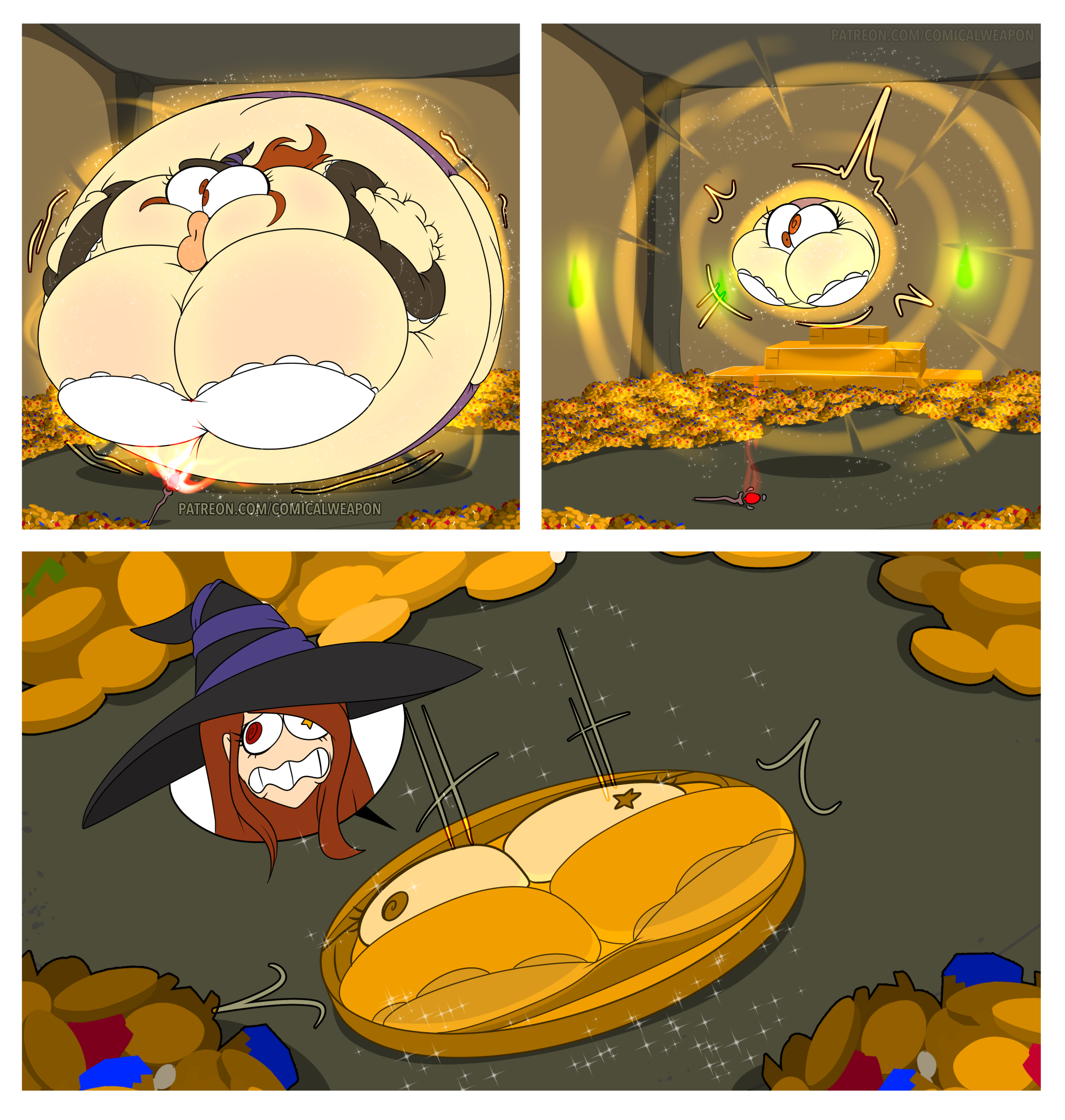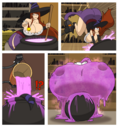 Revy is looking for a bounty in the kingdom and thinks they’re hiding inside a funhouse. She runs inside, guns raised only to get hit by a cartoony trap. She gets bit by several more traps (Falling anvils, getting harmlessly shot into swiss cheese, getting her but burned, etc.), turning her more and more toony until she leaves as a curvaceous toon too dazed to remember what she was doing