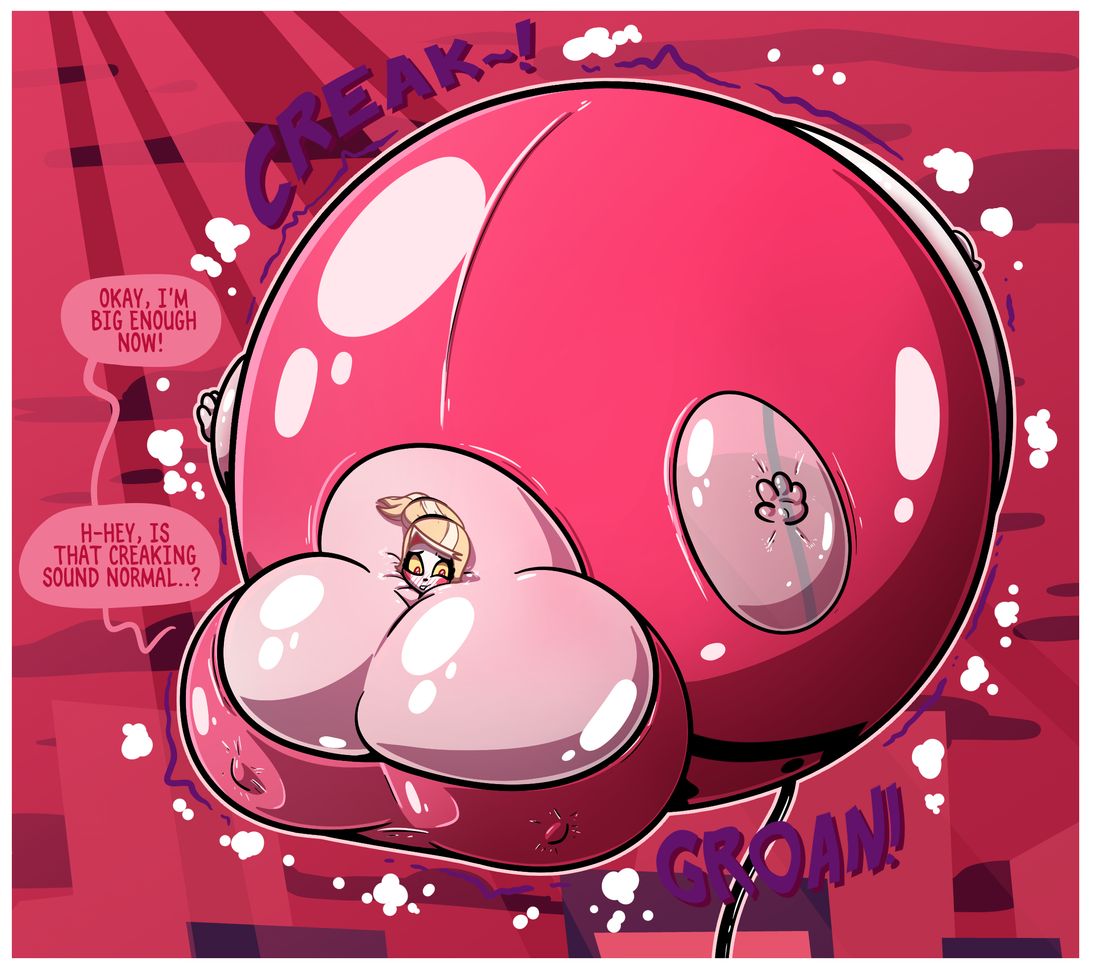 I really don't get what people love about this guy. All his sequences are identical trite 7-slide inflate to pop events. There's no environments, two slides are wasted on the aftermath, the shapes are always the same, & the characters aren't even sexy. What's worse is the fact that he never takes any risks. Never reveals a crotch let alone a pussy. It's not sexy at all. It's goofy, clumsy, predictable overpriced cartoon shit! Can't believe people pay for this tbh. Each to their own I guess!