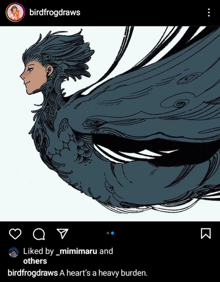 I've got a few more hear-me-outs: - Ribbit and Evil Pomni from TADC. - Howl Pendragon's harpy/bird form. - This little character from the animated short 'Goodbye Robin'.