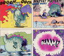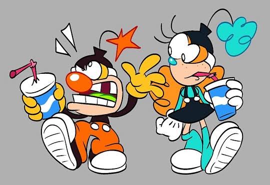 Maybe the bursting/popping for inflation, that they gotten from like ren & stimpy, the scene where stimpy inflated himself and become like body inflation version of himself, and ren pop him.