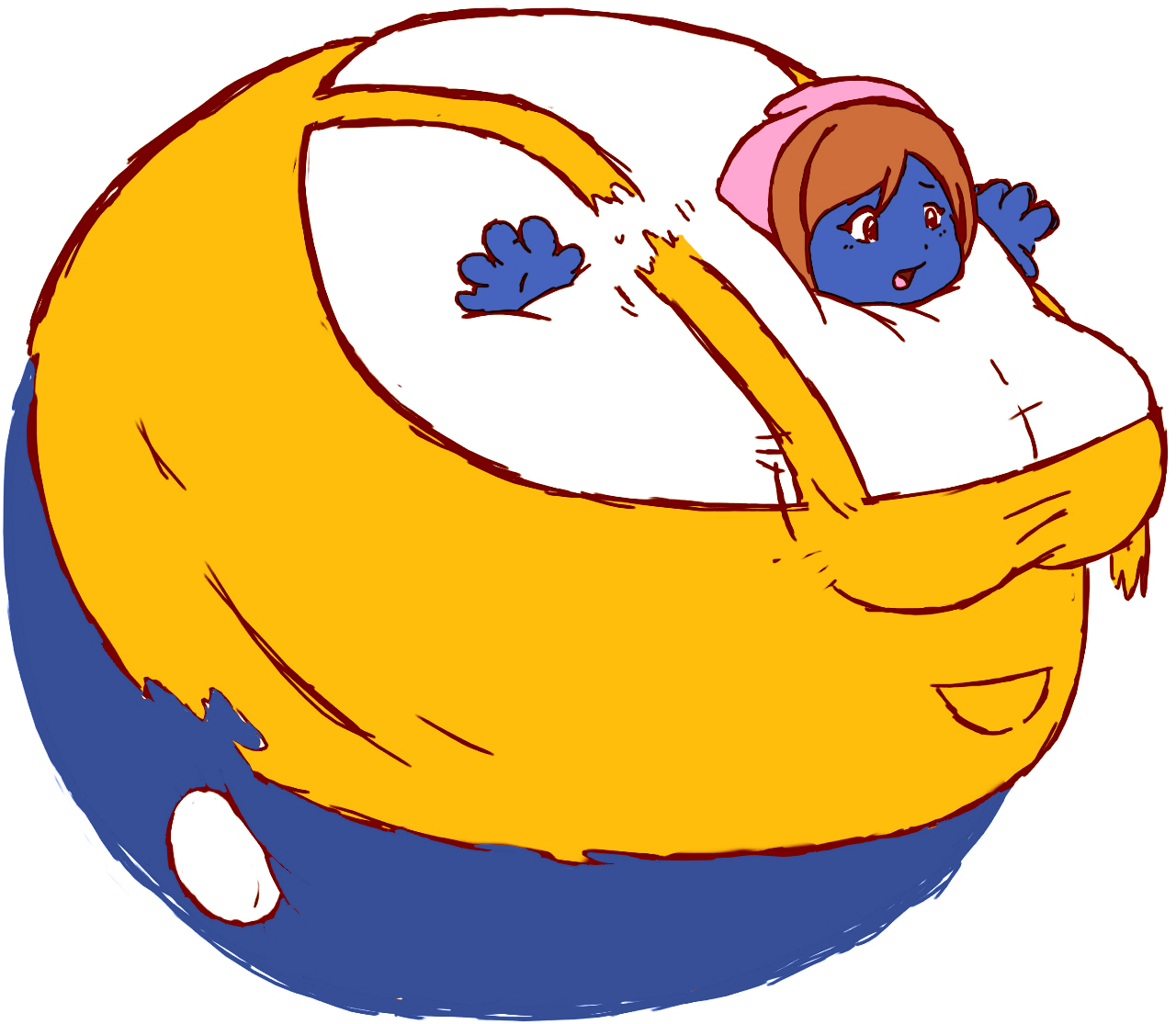 >>151077 Thought it'd be fun to give this a go. Sorry for the scuffness, I decided to use Paint as my program since it was mostly done for practice. Also this doesn't concern anyone but the entire time I was thinking about how much I want to be as inflated as the drawing