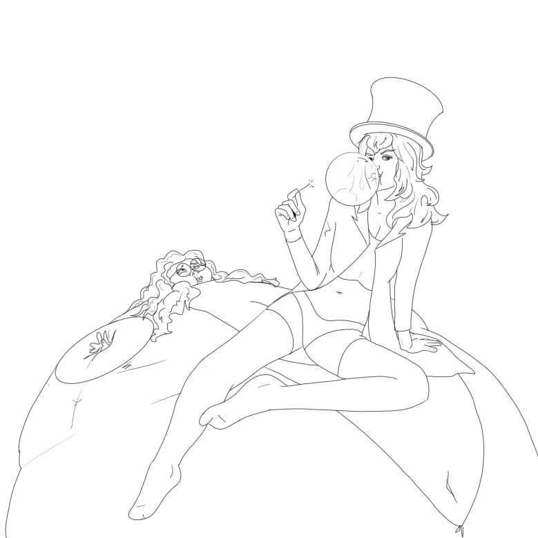 Anons anyone wanna color this sketch of goth with a TF gun in a factory