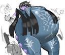 >>155501 Very noice, altho I do belive the coloring for the breast is inversed, but I do like me some side booba, so I'll take it Also that wassn't shadow in her hair, it genuinly is black with neon purple highlight, but gradients can be a bitch so I can see why you just went full purple But all in all, very nice work, thanks ^^