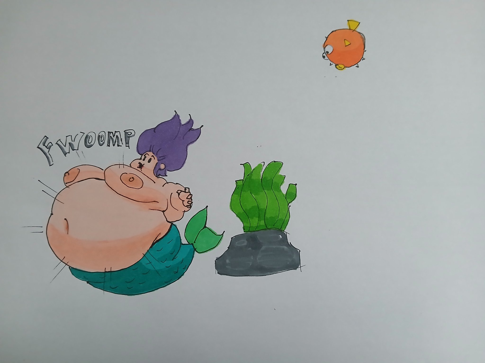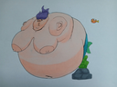 "What's happening to me?!" Eleanor gasped as the swelling spread to her torso. Her body began to round out, her blonde hair falling across her increasingly spherical form. But while her central body swelled into a large blueberry shape, her arms ballooned into absolutely massive orbs, each one larger than her torso, jutting out from her sides like enormous blue satellites.