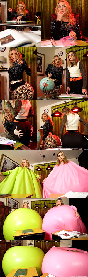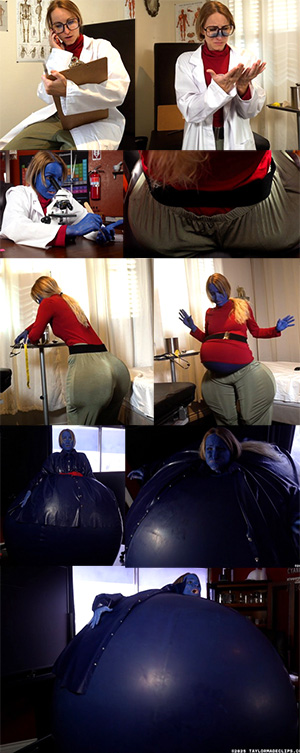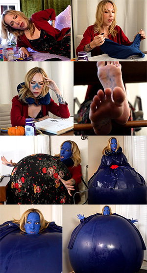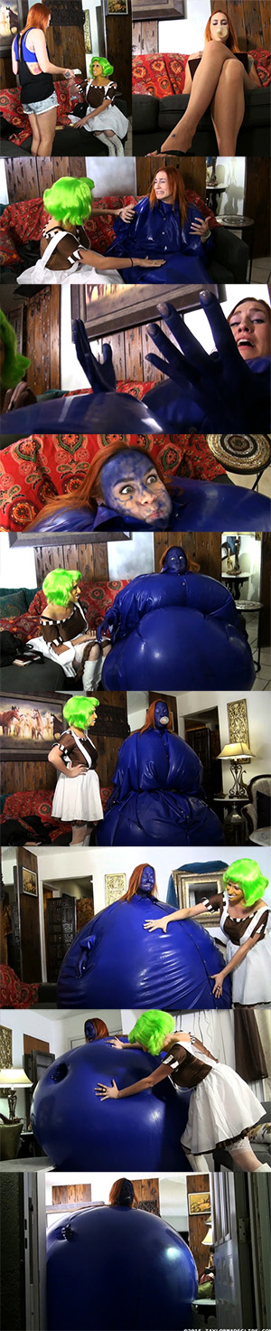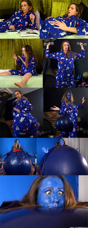 Fae has been having nightmares recently.They had been occurring every night and they have been the same, a burned man in a striped jumper and a clawed glove, and he keeps taunting Fae with balloons. Fae has a fear of balloons, especially when they pop. It sounds impossible, but Fae is convinced that in some way these nightmares are real. Fae has told her mother about this, but she laughed it off. Hesitantly, Fae goes to sleep, and when she does she enters another nightmare. Fae is in her bedroom, or what looks like her bedroom, and she's waiting for the burned man to appear, but while she waits, she begins to feel a strange pressure build up in her belly. Not only that, but she can also feel her skin stretching as if it were latex. Fae panics and realizes she's blowing up like a giant balloon. In the real world, Fae is asleep, but also inflating just like in her dream. Fae is freaking out as her clothes cannot contain her ballooning body, tearing off of her piece by piece, even her shoes bust off her swelling feet. In the real world, Fae has bust out of her pyjamas and her bed covers are raising as high as her body is swelling. In the nightmare, Fae is almost fully round but still inflating, it seems like there will be no end. But then, the burned man (POV) appears in front of her. He reveals his clawed glove and starts taunting Fae, threatening to poke her, stroking his blades carefully against her taut belly, to the point where Fae is so terrified she starts crying. In the real world, Fae is swollen to the max, and visibly sweating.