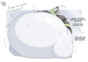 >>83762 You know you're making it in the fetish circles when someone else posts your art in one of the chan forums. I was commissioned to draw a follow-up, which I posted to my public accounts just a little after a week after this was uploaded here. I already posted it in the general blueberry thread, but I might as well post the sequel, along with the abridged short story here. --- You smile and inhale a deep breath of the ocean air. The soft crashes of each gentle wave wash your worries out to the sea. You're already glad you let Genevieve talk you into this. Your hand goes to Genevieve's ball first, and in a moment, she's at your side, towering over you. Once your shy, quiet Gardevoir, Genevieve has now and forever been transformed into a giant blueberry, eight feet in diameter, with boobs bigger than a pair of Gravelers. She smiles and laughs in delight as her vestigial hands and feet flapped and kicked from within the divots of her body. "It's beautiful!" Genevieve exclaimed. "Sure is," you reply, somewhat absent-minded as your hand gently strokes her side. She coos and awes as her rosy eyes scanned the scene. She turned her head, doing her best to look at you over the horizon of her own relatively new blueberry body. "Thank you for taking us here, Master." "Thank you for convincing me to come here, Genevieve. I can already tell today is going to be a good day, for all of us." "Yeah..." Genevieve says, looking a little bashful. "Master, could you, um... put me back in my PokeBall, for just a moment?" To tilt your head in confusion. "Why?" "I have a surprise for you," she says, excitement working its way into her voice. You just look at her for a moment, uncertain. "Okay, sure," you slowly answer, and recall your permaberry Gardevoir. ("I'll be quick, I promise!") Genevieve telepathically says from inside her PokeBall, than withdraws just as quickly from your mind. You stare at her capsule in confusion for a moment, then make an uncertain "Hmmm..." before seeing to letting out the rest of your Pokemon. A few minutes pass before she contacts you again. ("Okay master, I'm ready!") With one last moment to brace yourself, you let Genevieve back out of her PokeBall, and your eyes nearly pop out of your skull at the sight of her. "Do you like it?" She asked, an eagerness in her voice. "Whoa..." you mutter, staring in awe at her succulent blue skin, canyon of cleavage, and enormous blueberry breasts, threatening to pop out of her bikini top. "Master?" You're startled out of your staring, realizing you still haven't answered her question. "Genevieve... you look... golden." Genevieve's eyes widened, lighting up like Moonblasts. She looked away from you, bashful, even as a smile as wide as her facial muscles could push creased her cheeks. Her hands flapped and her feet kicked in excitement. "You like it that much?" she asks, stammered. "I am beyond impressed, Genevieve." Genevieve's smile grew even wider. "I-I'm glad you love it so much, master." "I do. So, now that your in your swimsuit, how does me rolling you to the water for a swim suit you?" She smiles. "I would love to go swimming with you, master. Although, be careful when you're rolling me. We wouldn't want anything to... pop out... would we?"