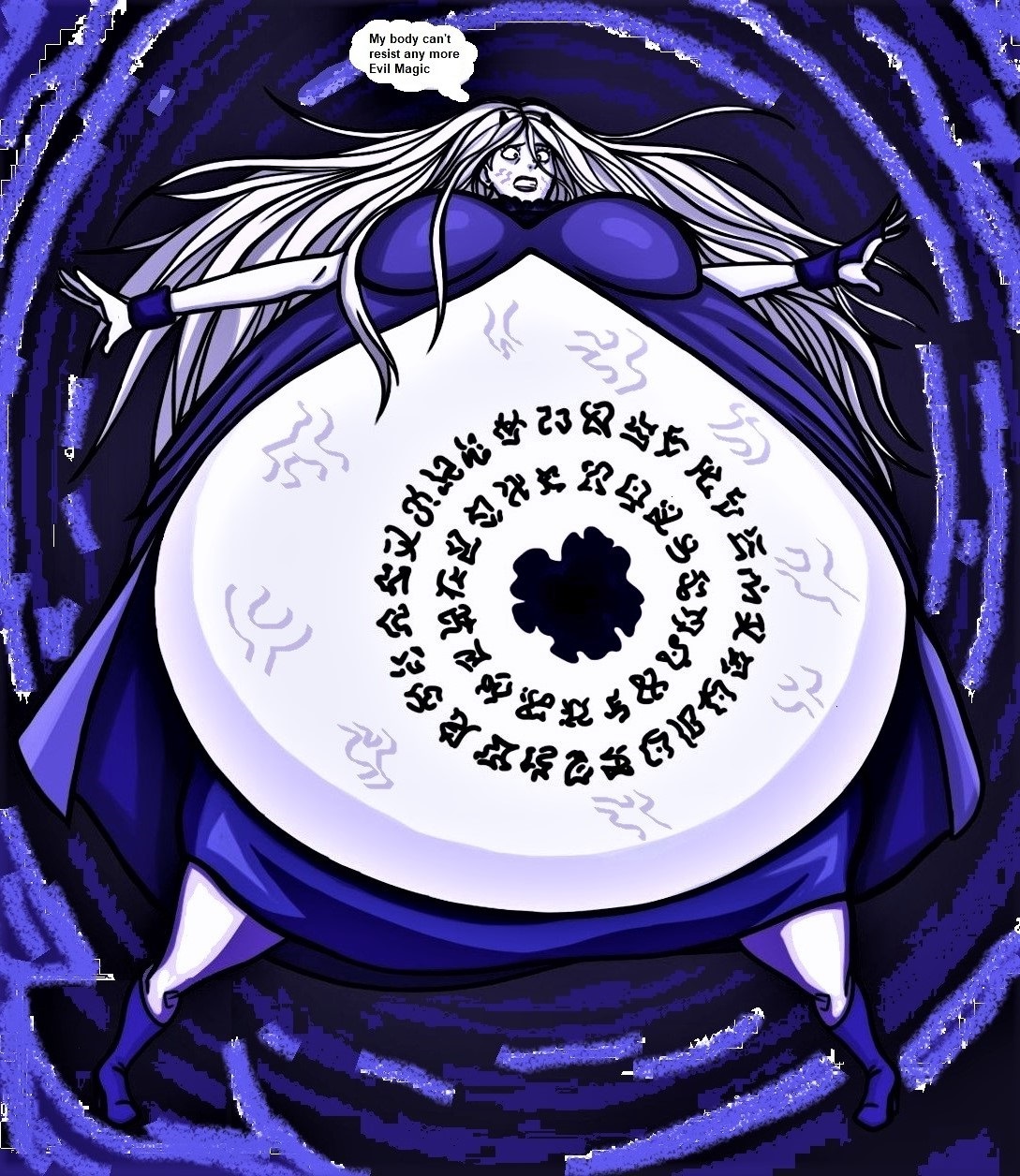 She tries to scream, but her screams are muffled by her bloated cheeks and lips.