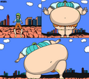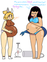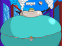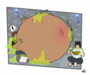 Tomo bursts into laughs while Osaka points her finger at the bloated Yukari and saying the following: