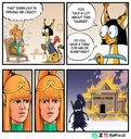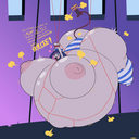 Yukari trips over while attempting to inflate her pooltoy with a foot-pump and gets stunned.