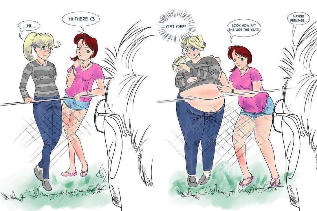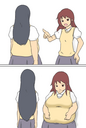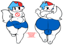 *I gently opened the door and wave, keeping a smile on my face.* “Hey. It’s okay. I just wanna talk-“ *I was interrupted by you shoving your face into my boobs and resting your hands on my chubby belly.* “H-Hmm…I-If you wanted to do this, you could’ve just asked…” *I told you with a soft smile. I look down to see you smiling cheek to cheek too.*