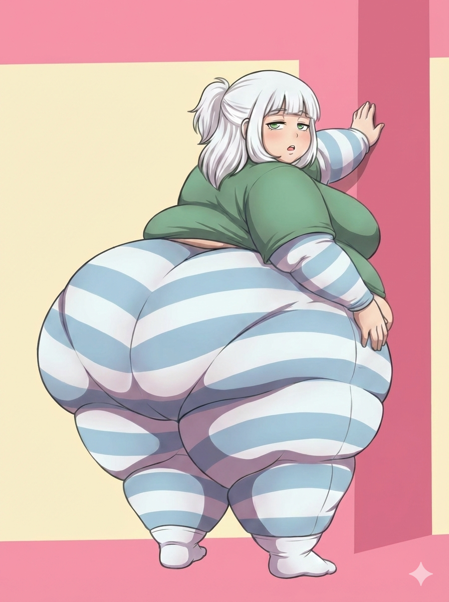 *You stepped back. It was like you didn’t know me at all. You gave me a pretty aggressive up down before blushing. My breasts, belly, hips, ass, thighs all wider and bigger than your head! You scurried away to your bedroom and I followed. You sat on your bed rocking back and forth. I peeped throw the crack in the door and saw your cute room. Action figures and collectibles everywhere!…Wait, why were some of the figures…BIGGER in detail than they’re actually size? I saw Super POCHACO, Boa Hancock, and even a…Rasputia Latimore posable toy? Oh. I get it now.*