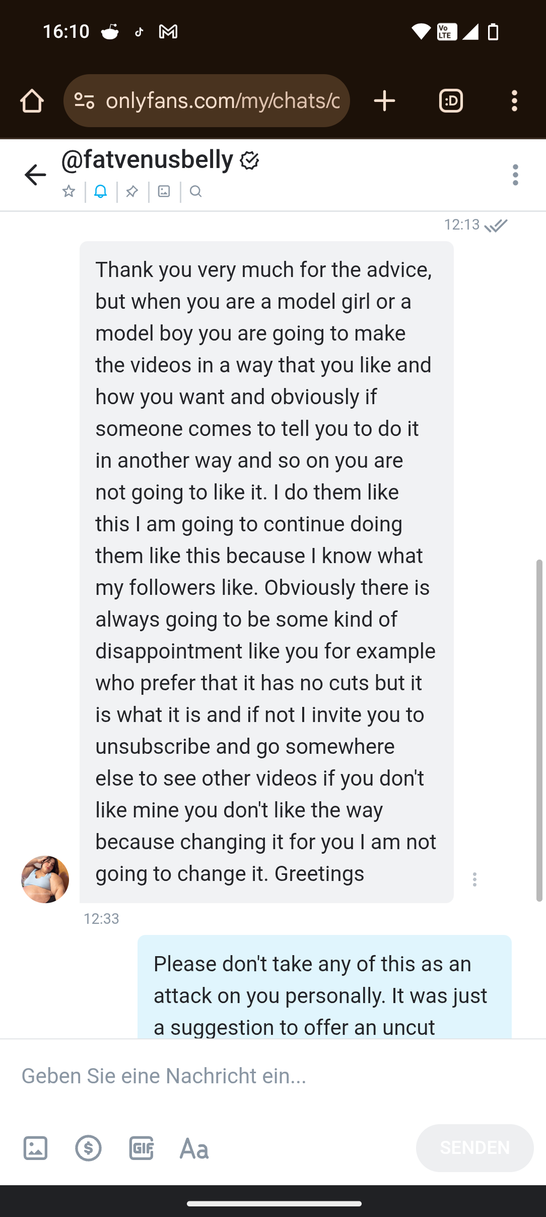People just express their annoyance for many reasons, many things that you know very well that you have done, a clear example I saw how in the IG community you tried to defame 2 models, meibbw and bbw_feede Both Latin American models from Chile only because both had uploaded on their platforms and had for sale videos similar to yours and those of other much more models known all over the world, as I mentioned earlier.