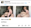 >>145101 I agree. Unless an SSBBW comes back on the scene bigger than ever - as in fatter than ever - it is hard for her to regain the momentum before she went away. Roxxie just hasn't done that and is still trying to coast along on old glories.