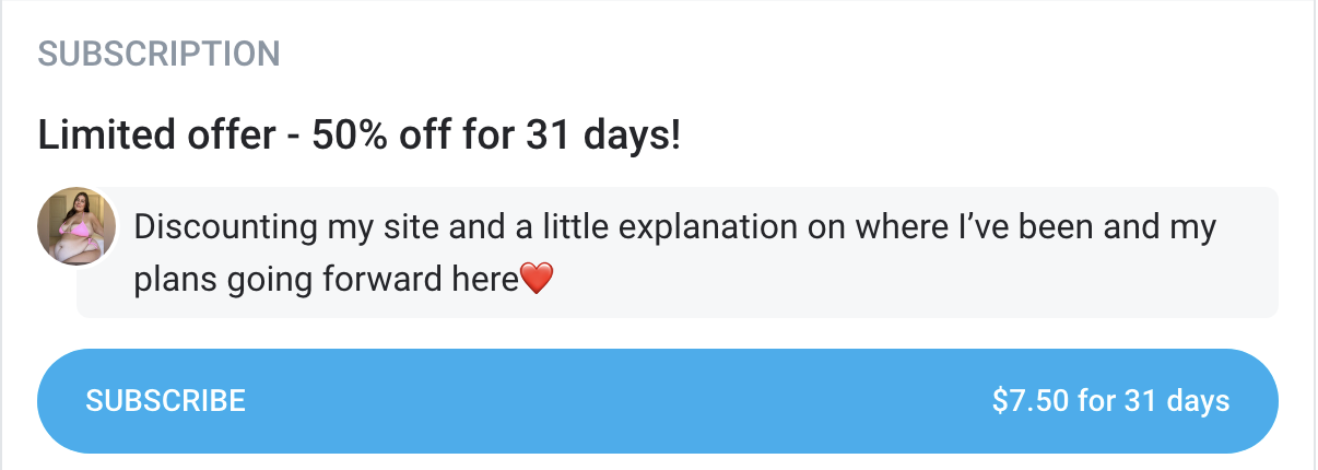 From Of : It’s been a long time since I’ve been active online and I still don’t know if I will ever be back. I have kept my sites open for anyone who still wants to see my content. (there’s a lot of good stuff here 😘) I needed to take a step back when my mom received a life altering cancer diagnosis. As I’m sure most of you will understand and agree I don’t need to explain my absence but after 10+ years here I felt like I owe a little explanation. My life turned upside down and my priorities shifted. I will keep my sites open until I make a comeback or retire for good. I’m going to heavily discount this site and possibly post some older vids that weren’t offered here before for anyone who wants to keep watching ❤️ Thank you for always supporting me.