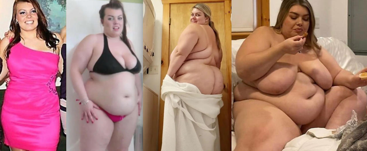 She was chunky in high school, definitely the “overweight cheerleader” type. So you get an FA boyfriend who you’re super attracted to and he tells you to lean in to one thing you’ve always struggled with. Her personality seems very casual and “fuck it” in general. Then things get real, you’re getting huge, he’s pushing for more, she’s probably getting depressed and disassociating. Marriage falls apart for many reasons, and now she has to build her life back which doesn’t include being 300 pounds because that was never her asking for it.