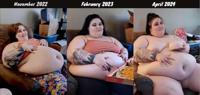 Whilst I don't like the double charging... i mean, it's definitely going towards feeding her. I bought one of her last videos, and she walked like 2 feet from a chair to her bed and was winded - she even said she pretty much does nothing but wake up and eat, and moved her bed into her living room, so is right near the fridge and her kitchen. This is a prime example of an SSBBW that is ploughing all her modeling money into reaching immobility, and she's practically already there.