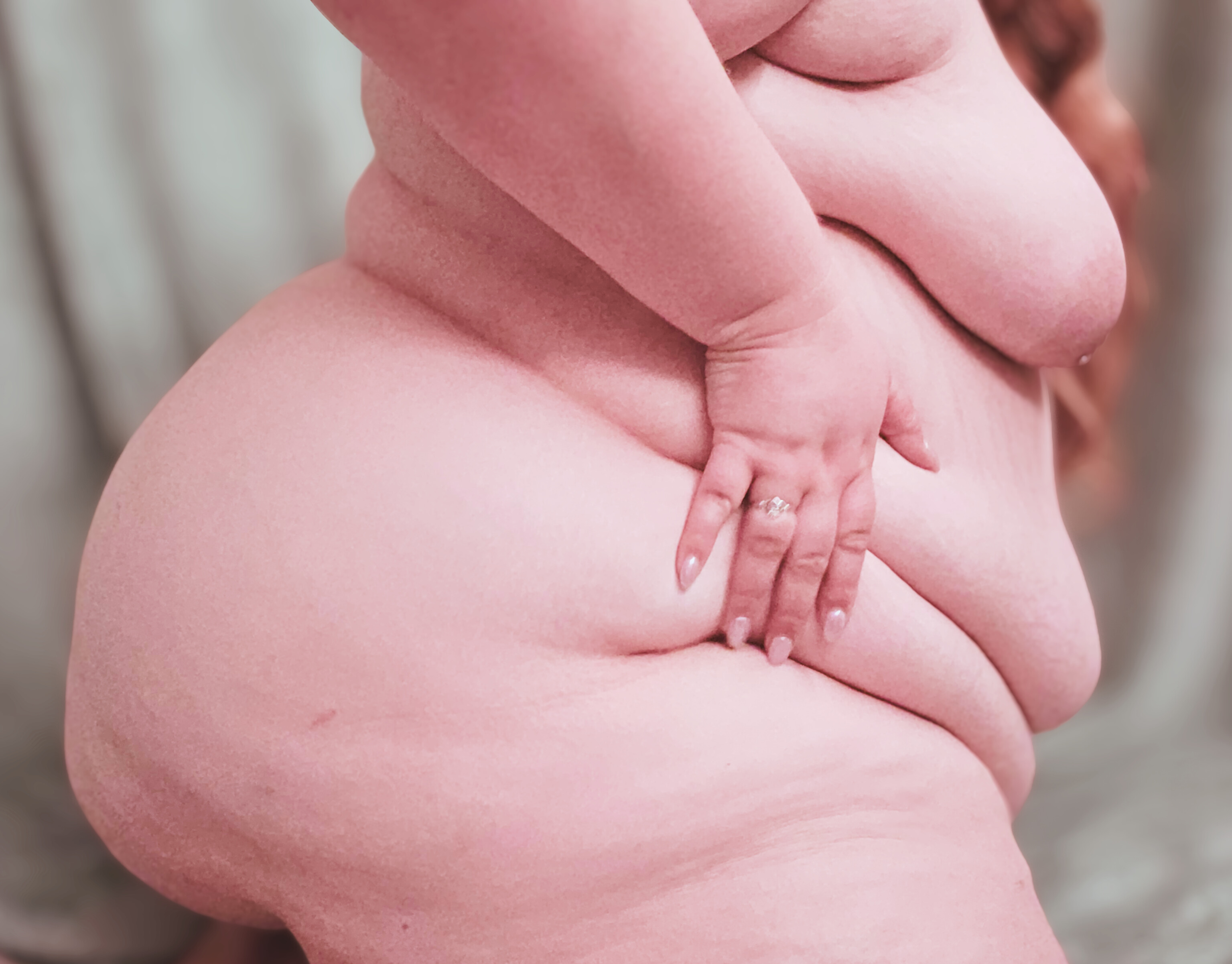 >women who are so fat that their belly folds in on itself into two luscious, grippable, fuckable rings of flab Easily the best belly shape in my opinion, absolute perfection