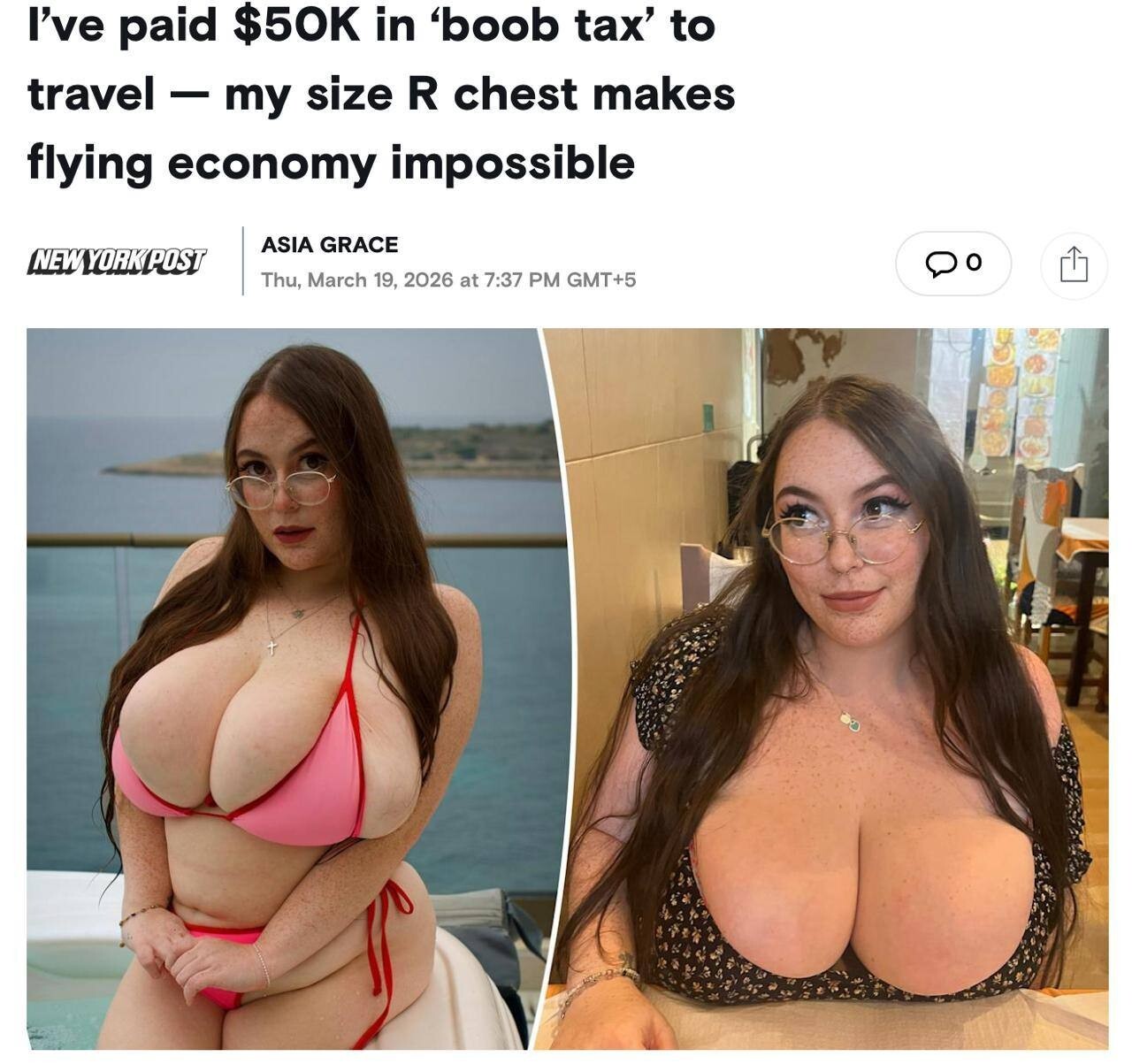 >>288667 This girl is always telling the dumbest stories about her tits. Yes they're big but she acts like she's got the biggest tits in Ireland.
