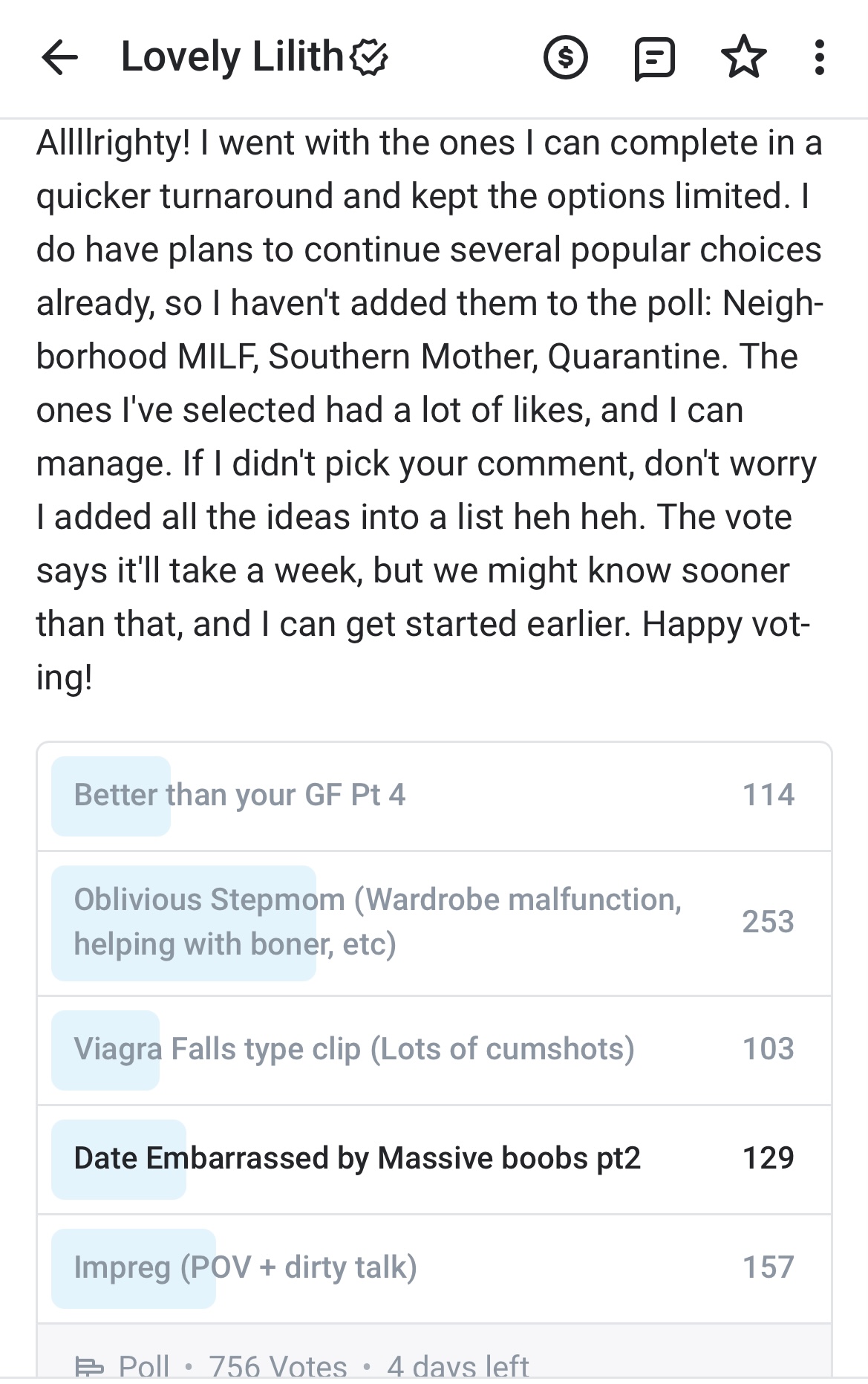 >>282541 what the point of poll? Oblivious Stepmother won the vote