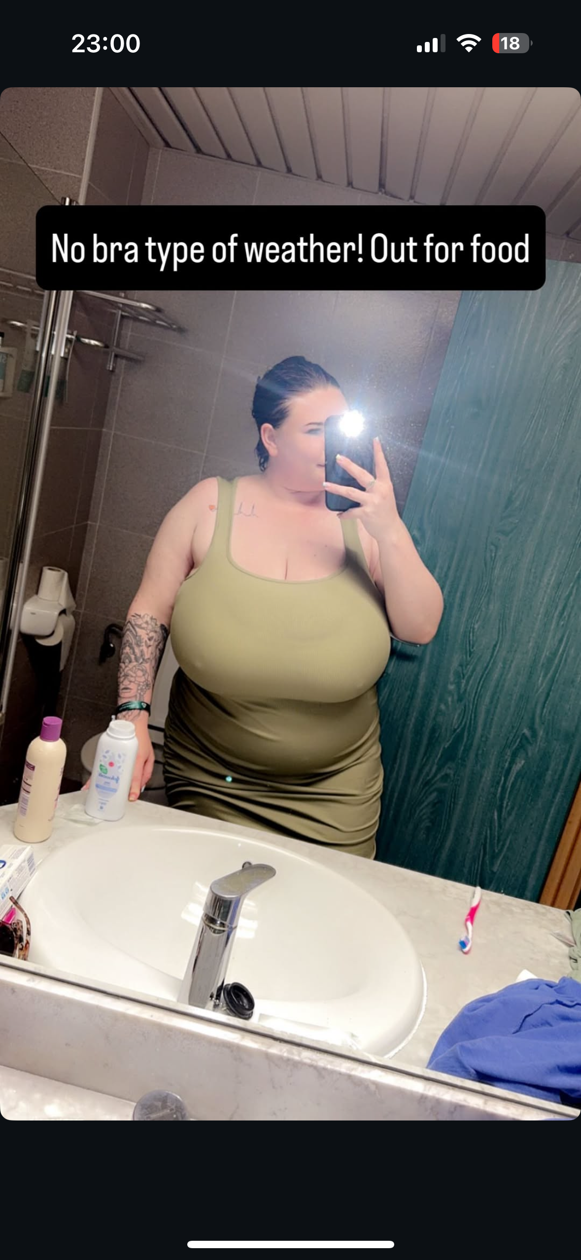 This is one of those who make a lot of their tits on IG but in reality they're just a spotty barrel with mud flaps. I mean more power to her but that's what you're getting in real life.