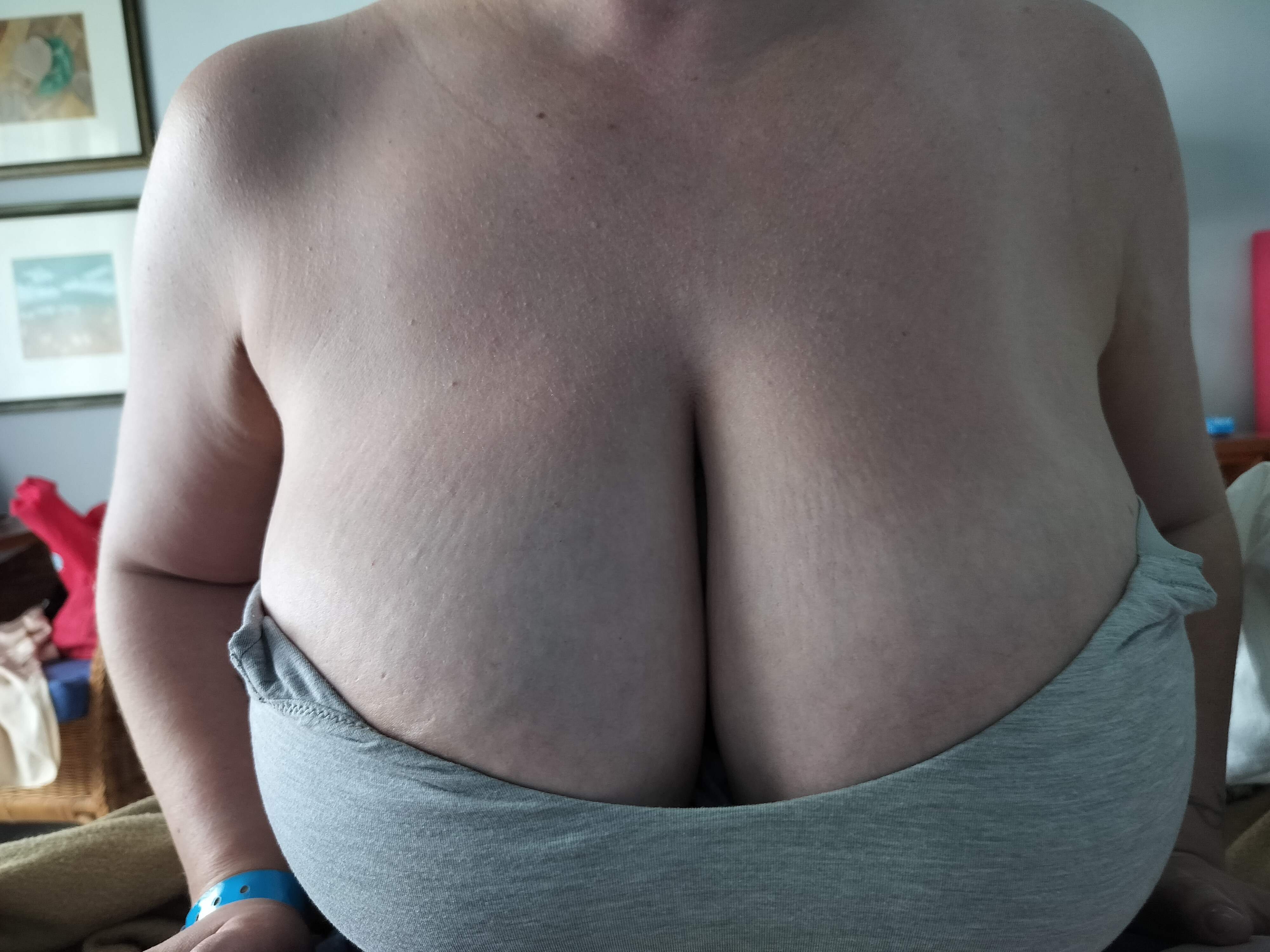 >>275997 Original poster here. She doesn't know what cup size she is. It's been years since she's gone proper bra shopping. It's easier for her to wear those soft stretchy sports bras. I remember her being a G cup years ago.