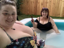 At the pool with het mom